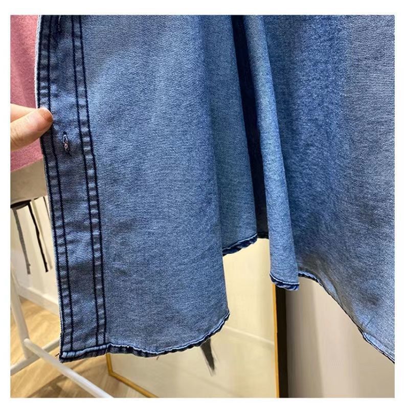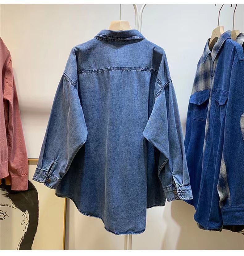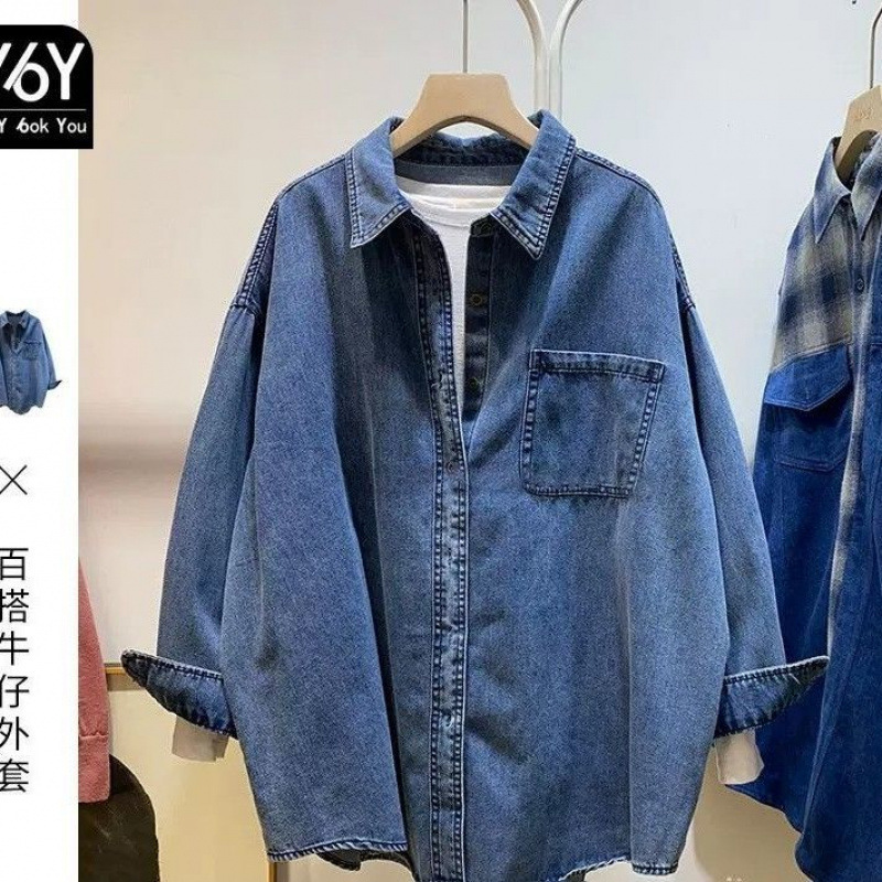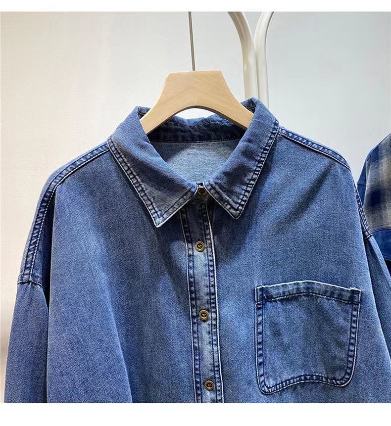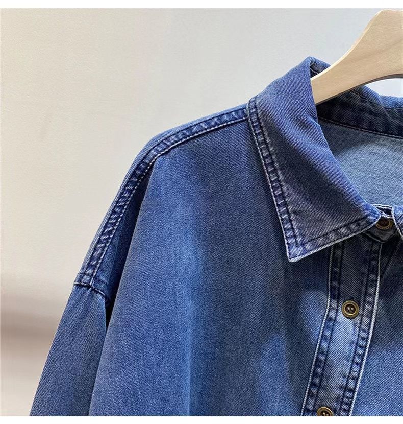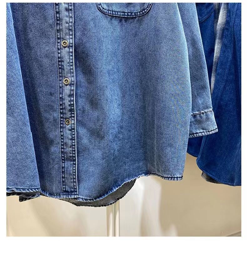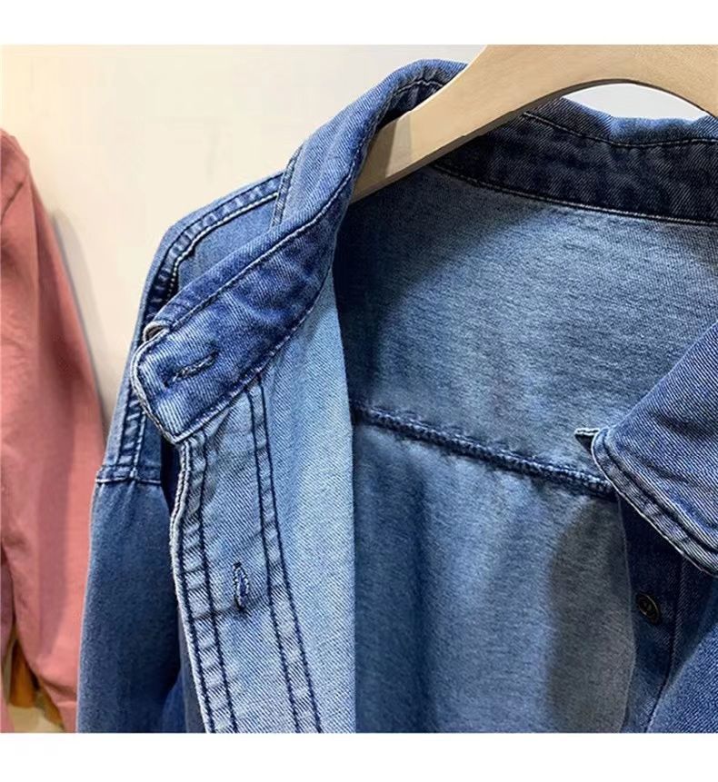 봄과 가을 뉴 블루 데님 셔츠 여성용 홍콩 맛 틈새 디자인 소프트 하이 엔드 데님 셔츠 재킷스토어 가기