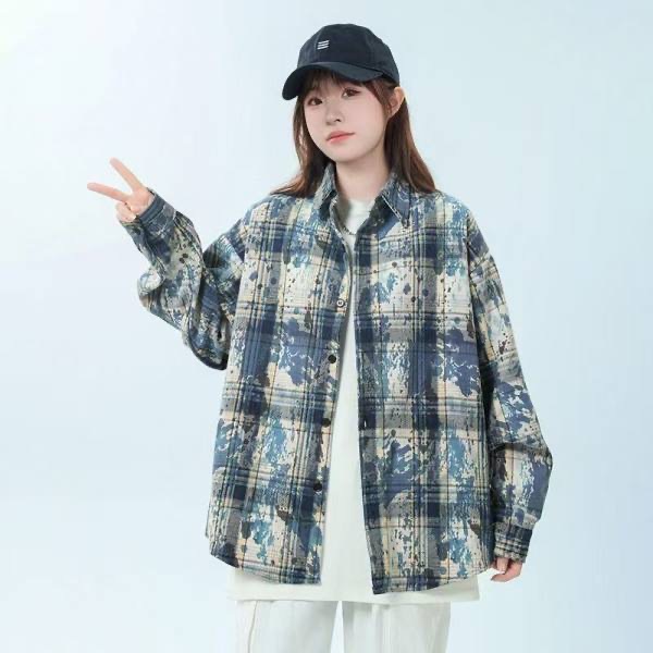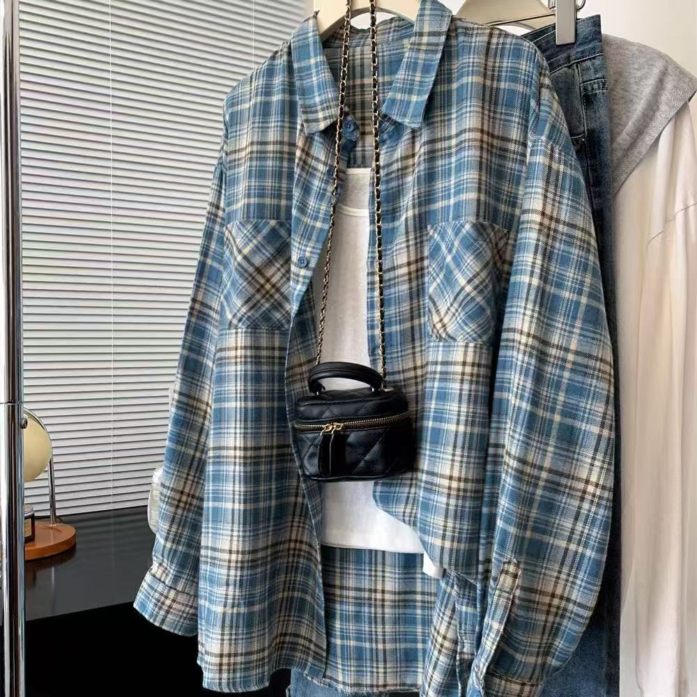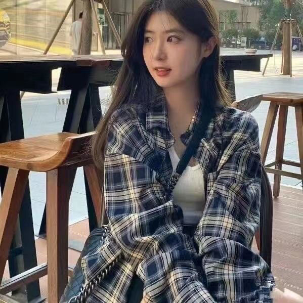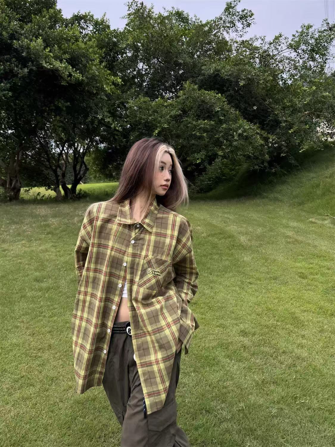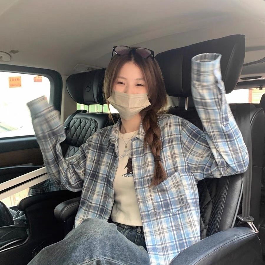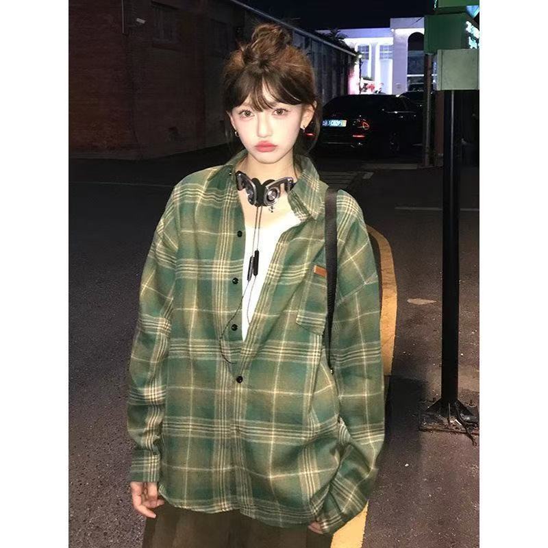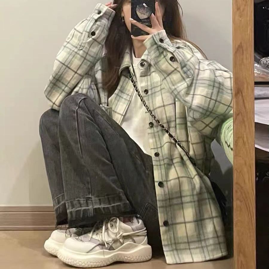 체크 무늬 셔츠 새로운 봄과 가을 캐주얼 그린 셔츠 재킷 올 매치 긴팔 탑 디자인 감각 틈새 슬림스토어 가기