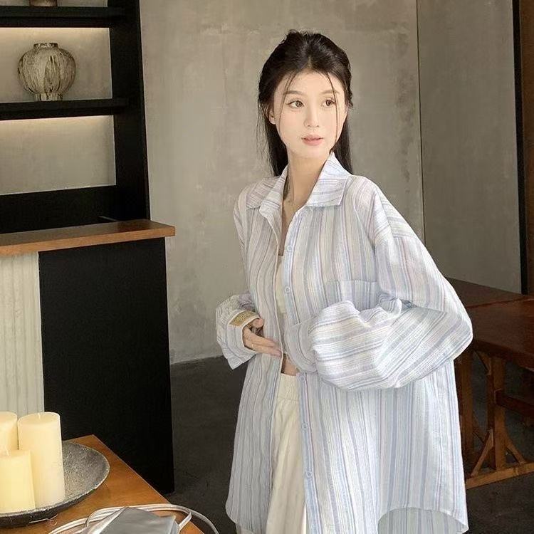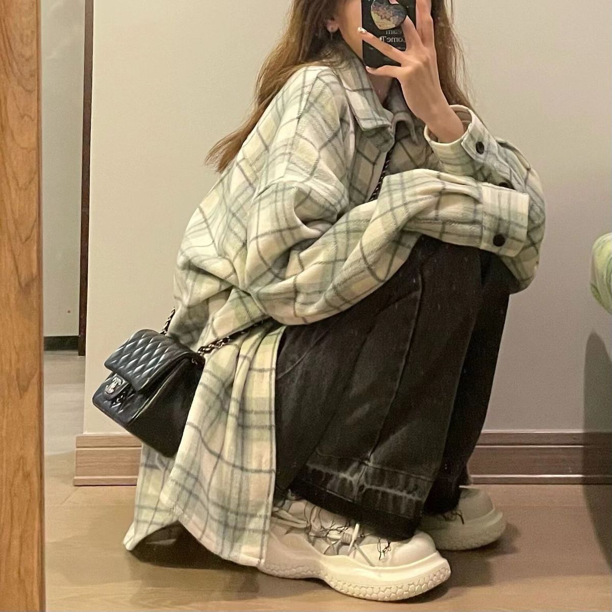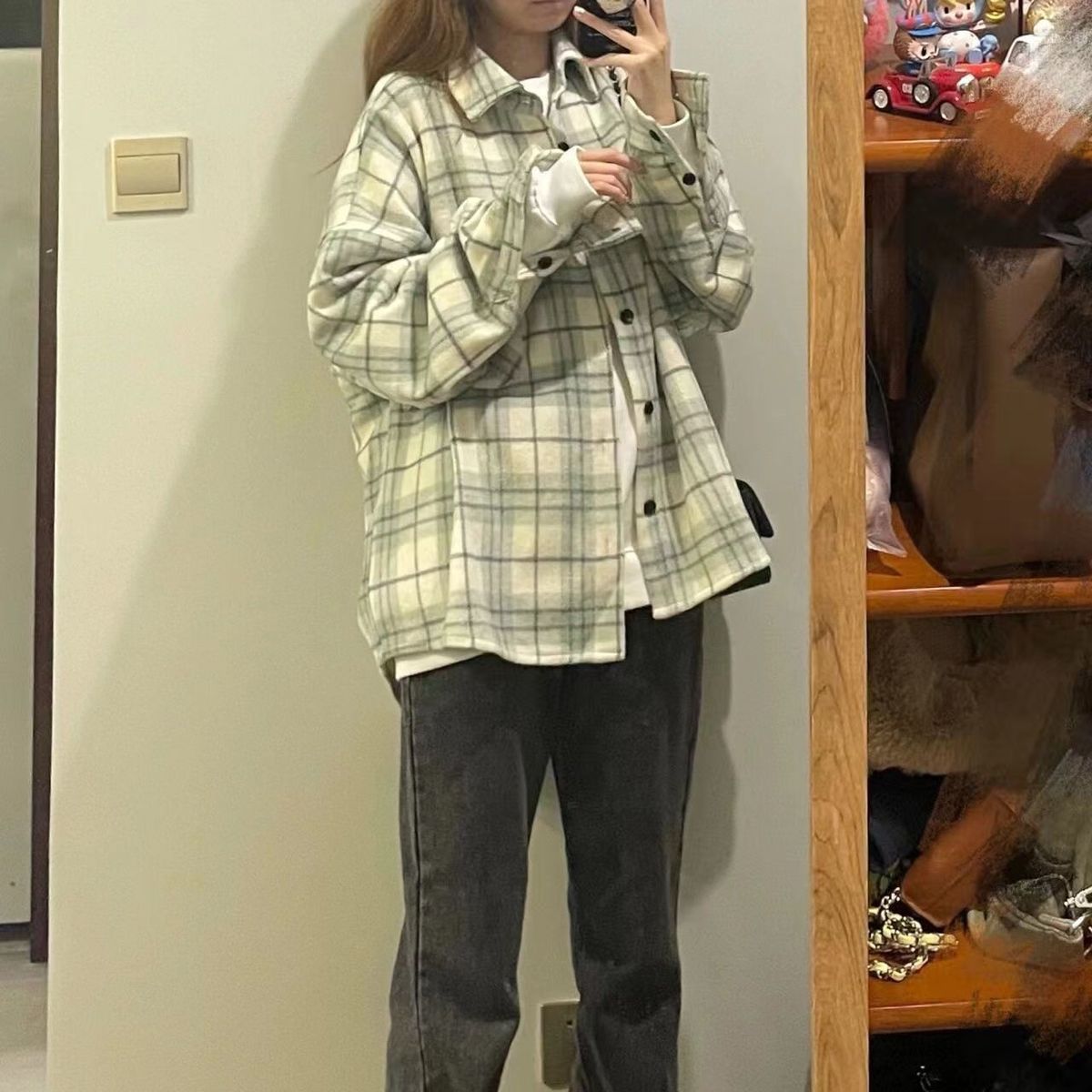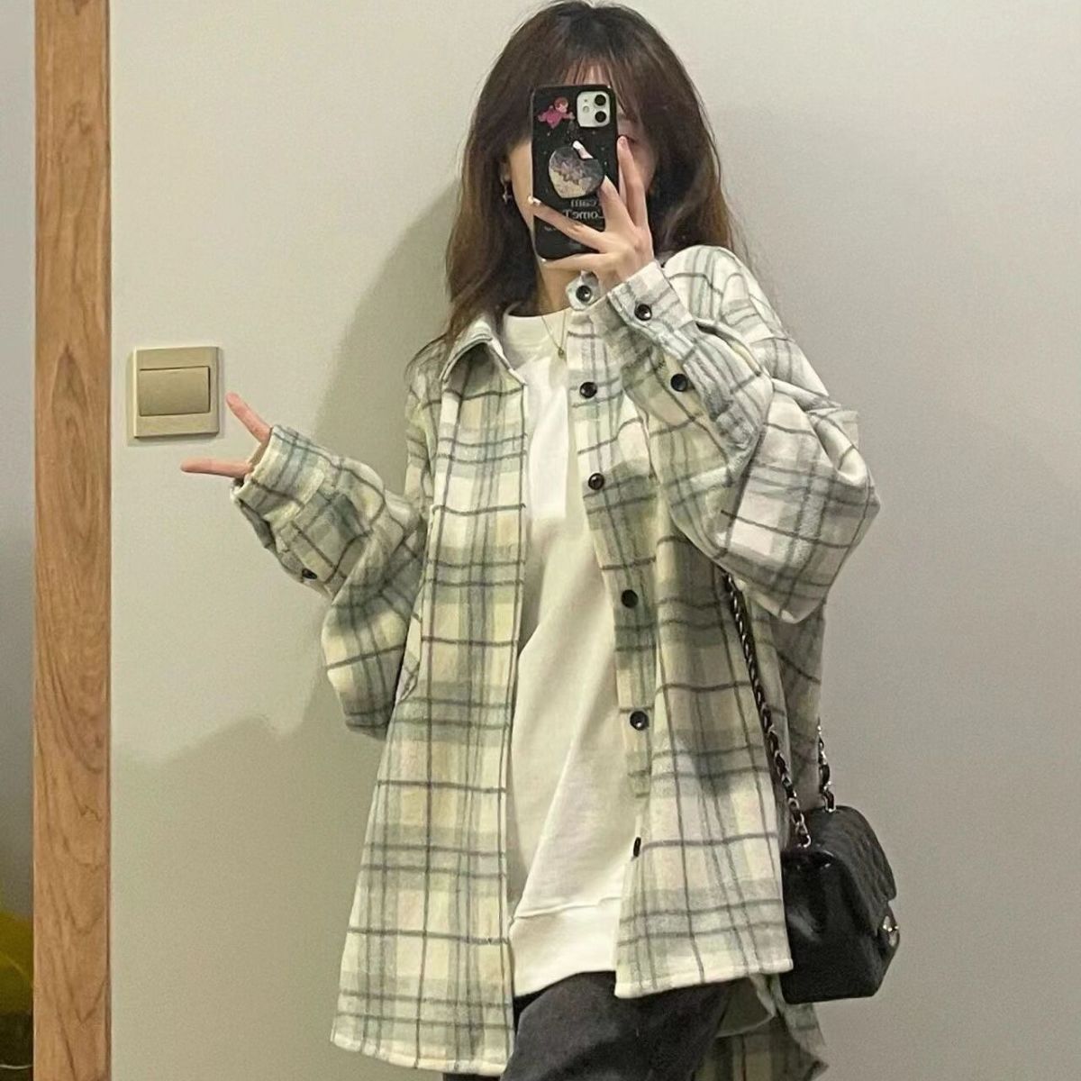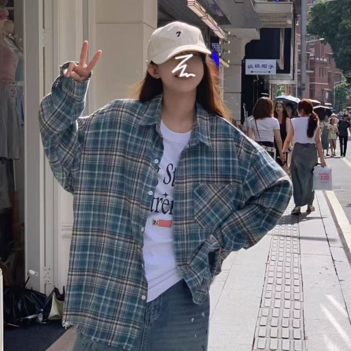 체크 무늬 셔츠 새로운 봄과 가을 캐주얼 그린 셔츠 재킷 올 매치 긴팔 탑 디자인 감각 틈새 슬림스토어 가기