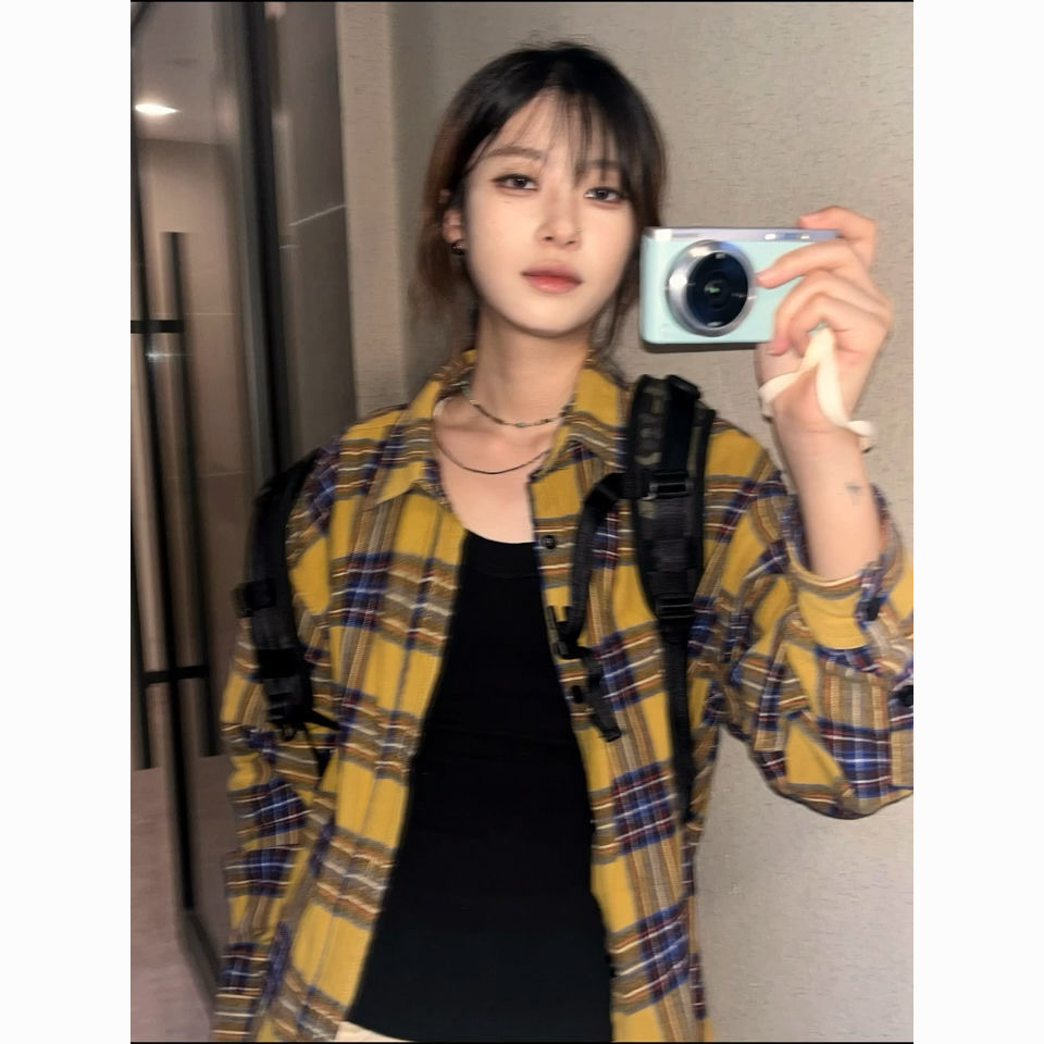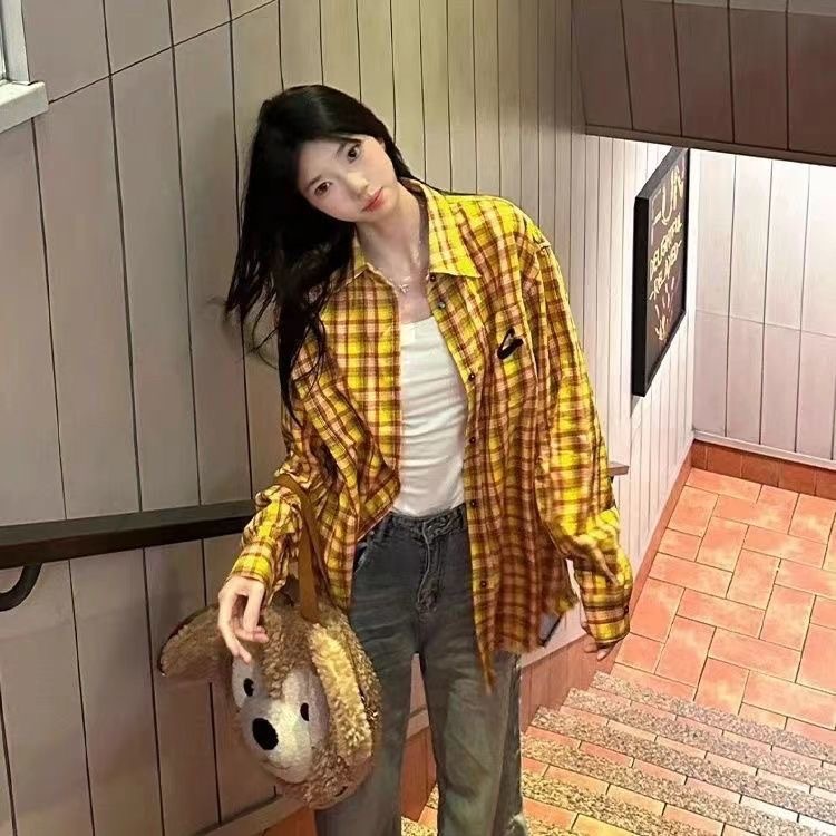 • YC59 태슬 옐로우 그리드#코튼 체크 무늬 셔츠