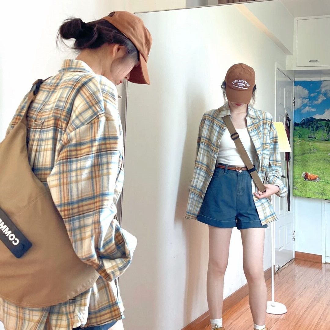 • YC31#코튼 체크 무늬 셔츠