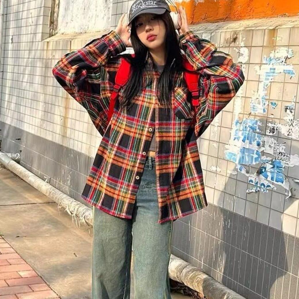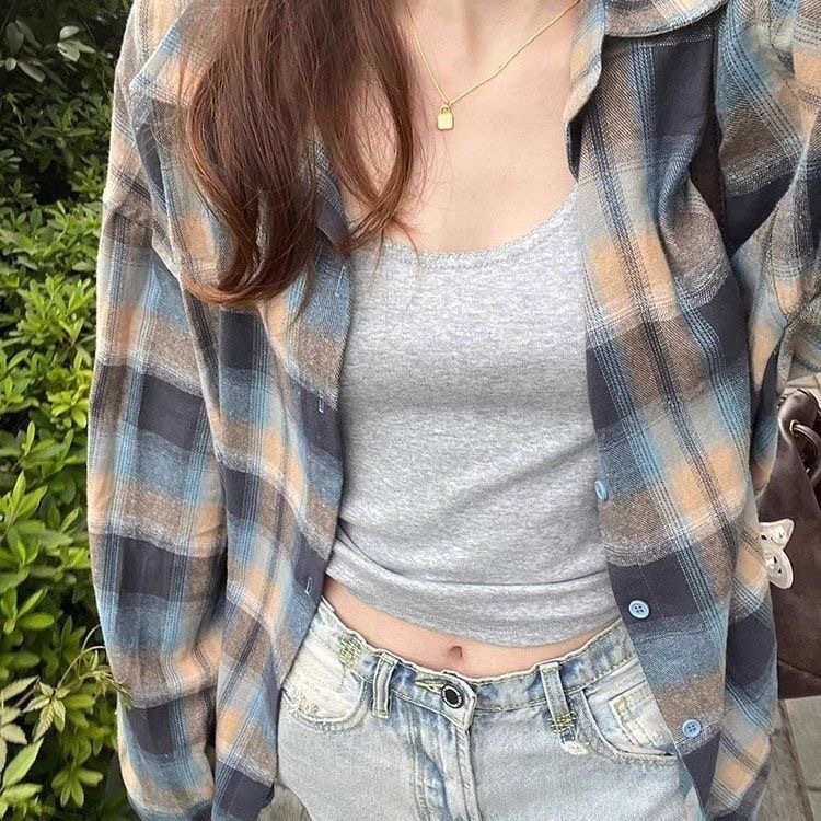 • YC09 레인보우 그리드#코튼 체크 무늬 셔츠