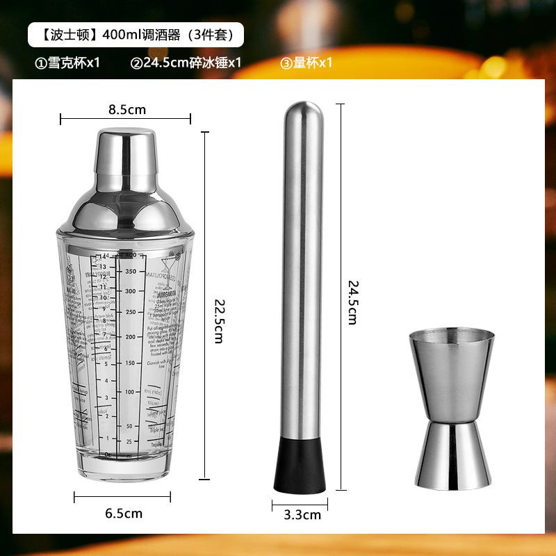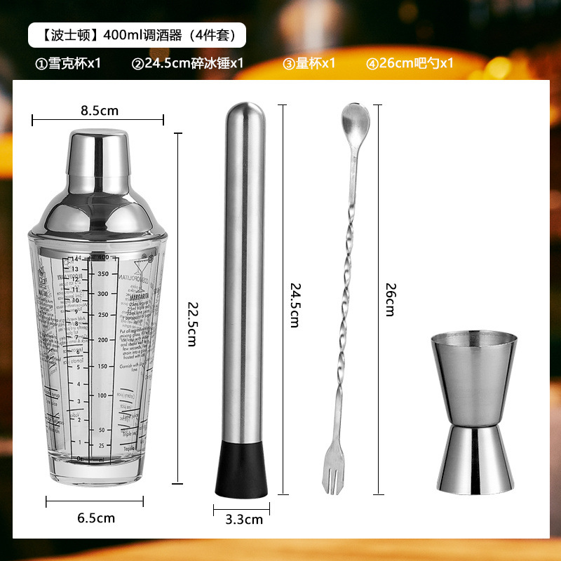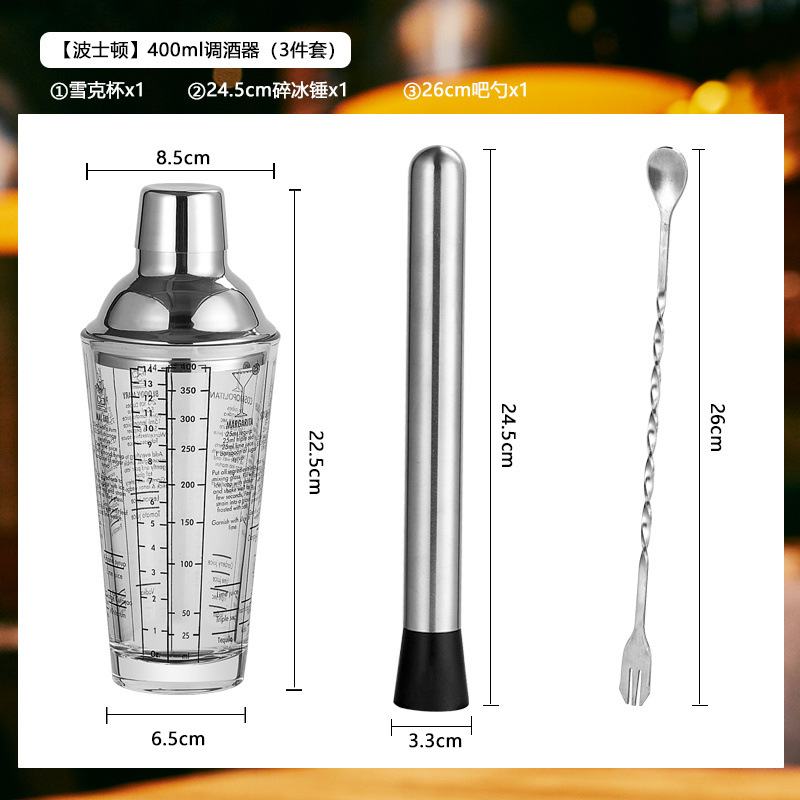 Schick Cup 304 스테인레스 스틸 칵테일 셰이커 유리 손 주전자 칵테일 셰이커 레몬 티 스타터 도구 세트