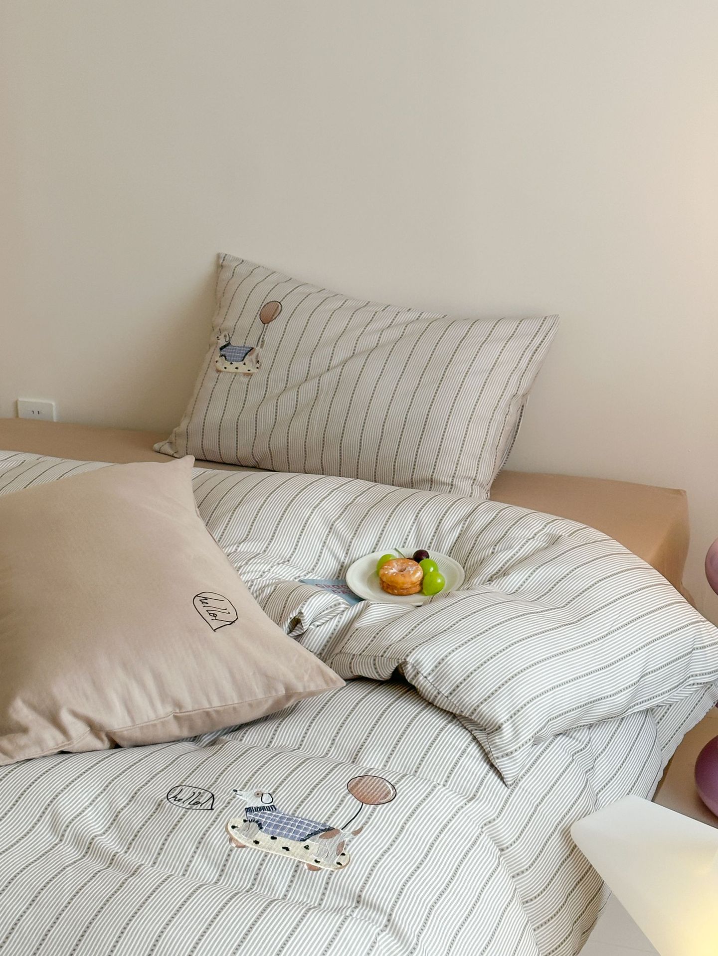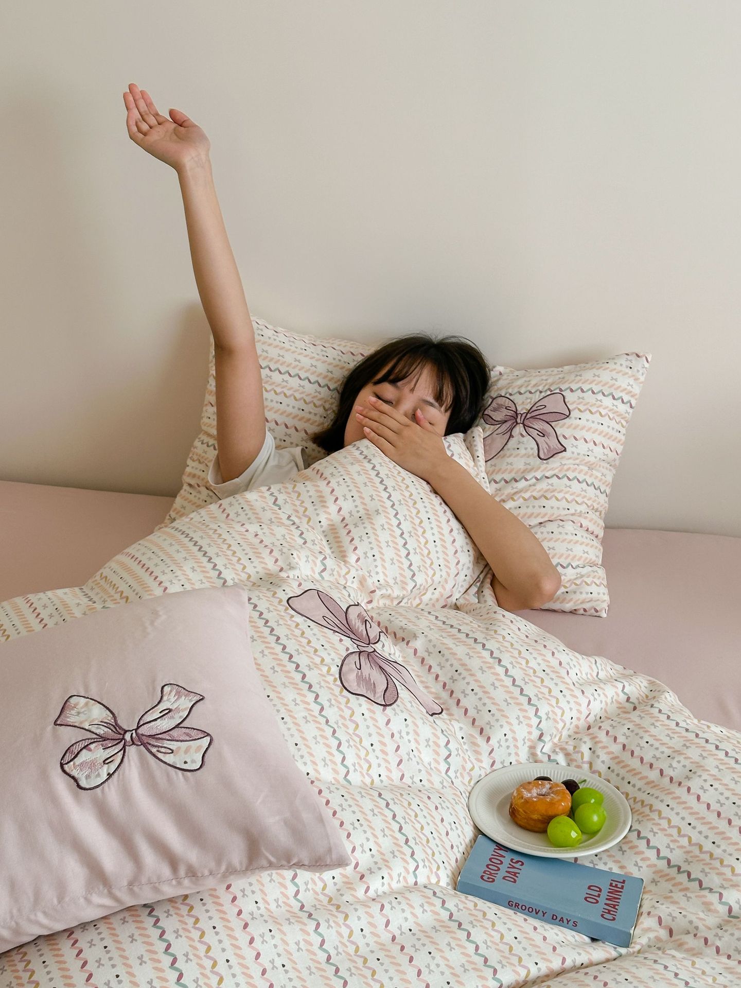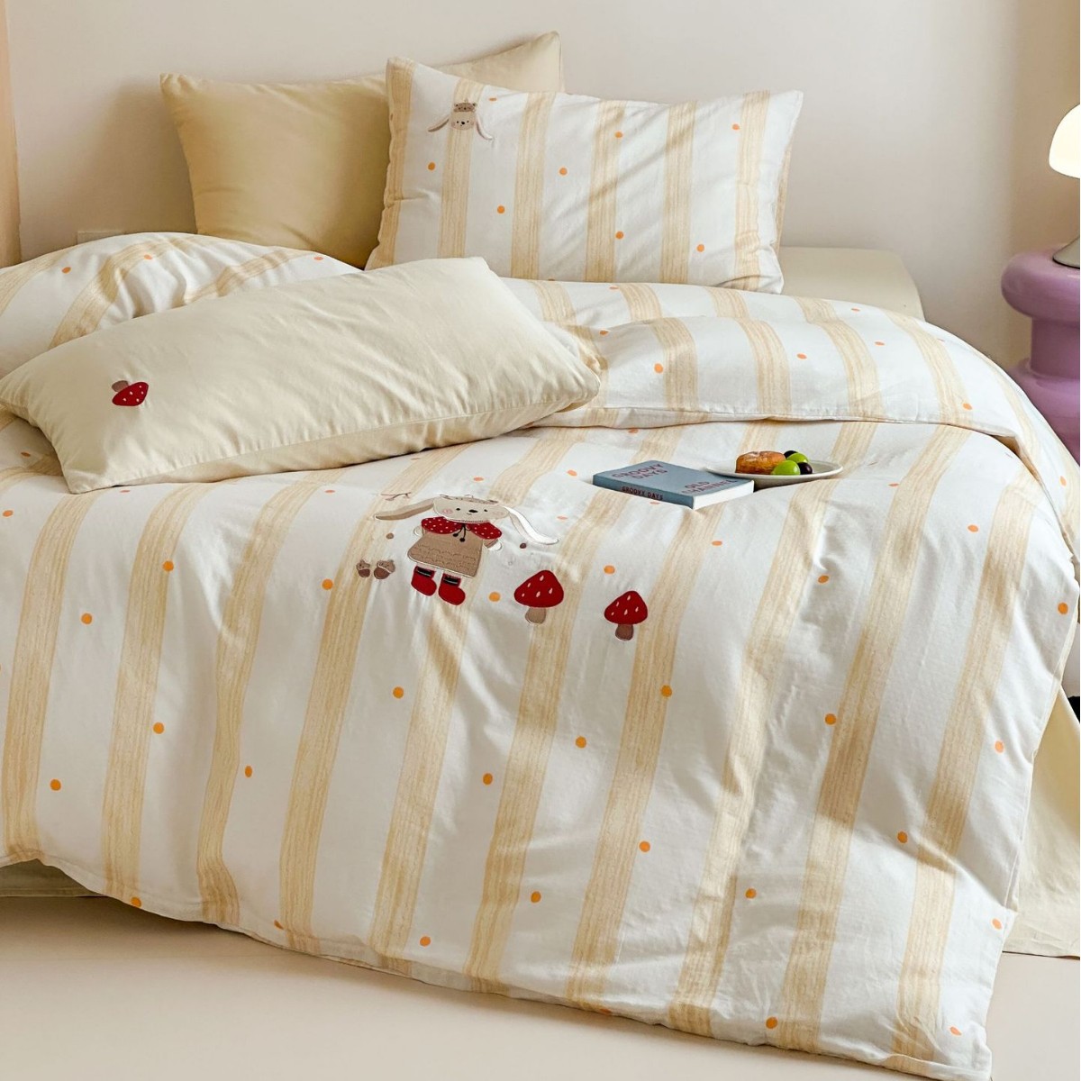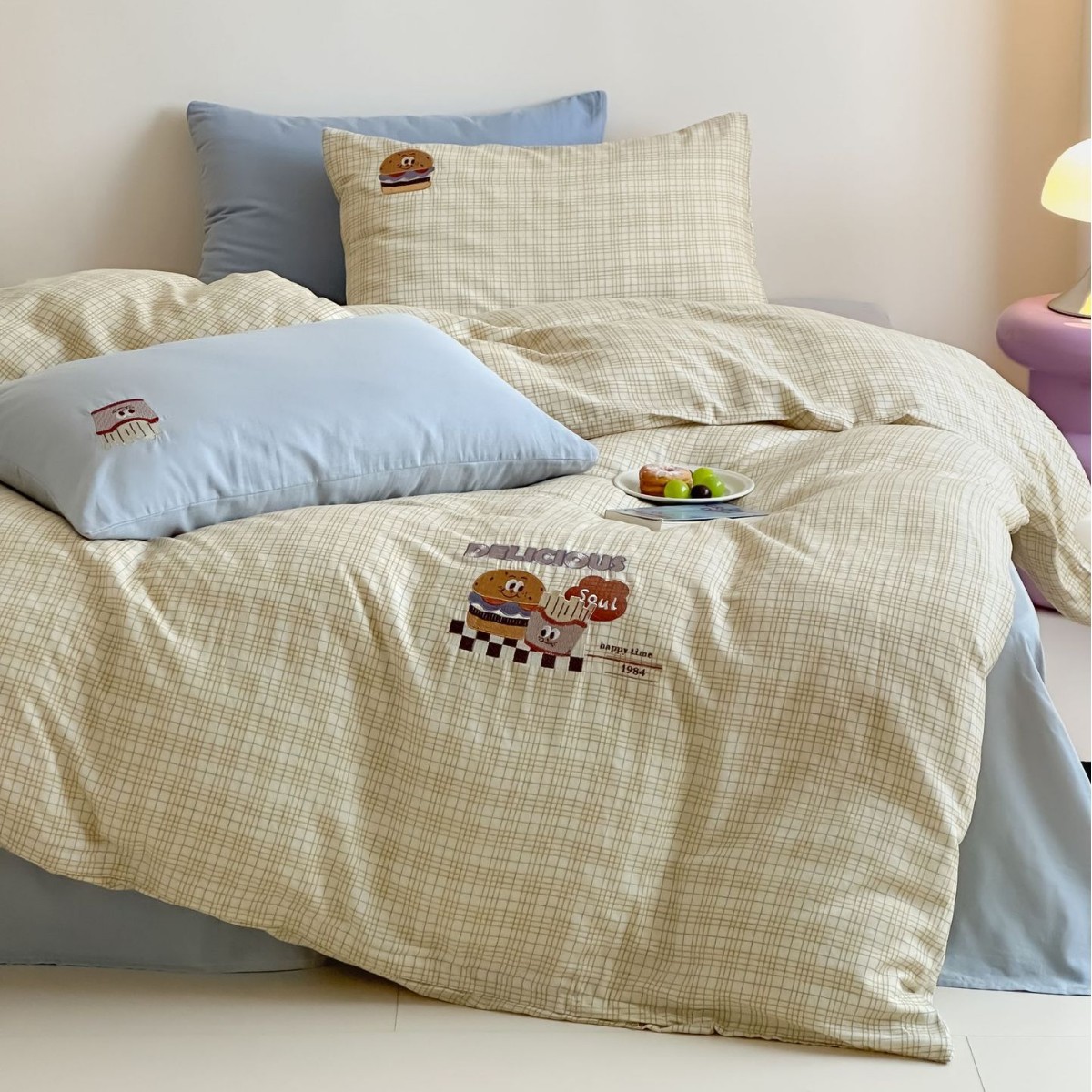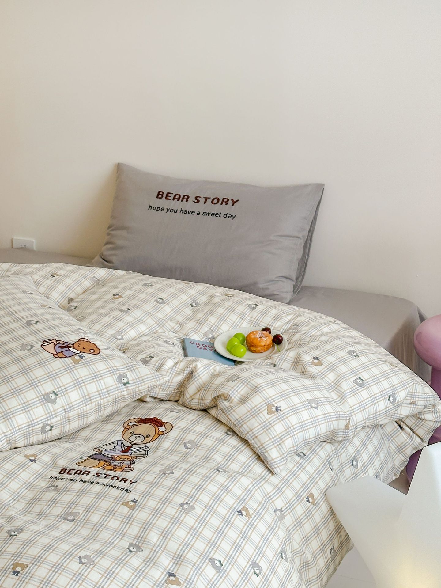 작은 신선한 면 더블 레이어 원사 4 세트 활 자수 코튼 퀼트 커버 기숙사 3 피스 침구