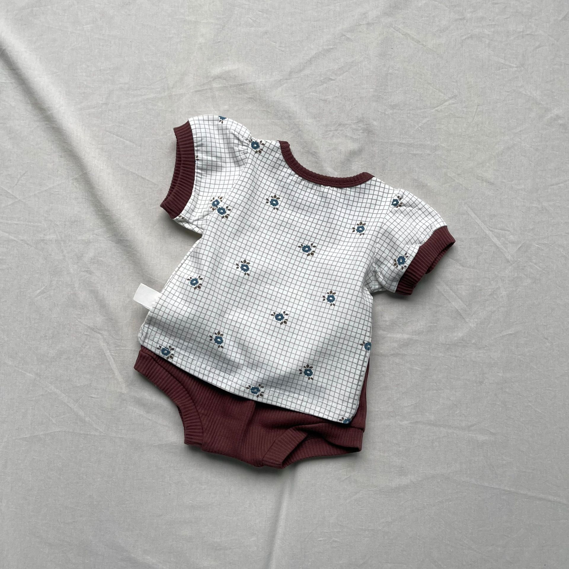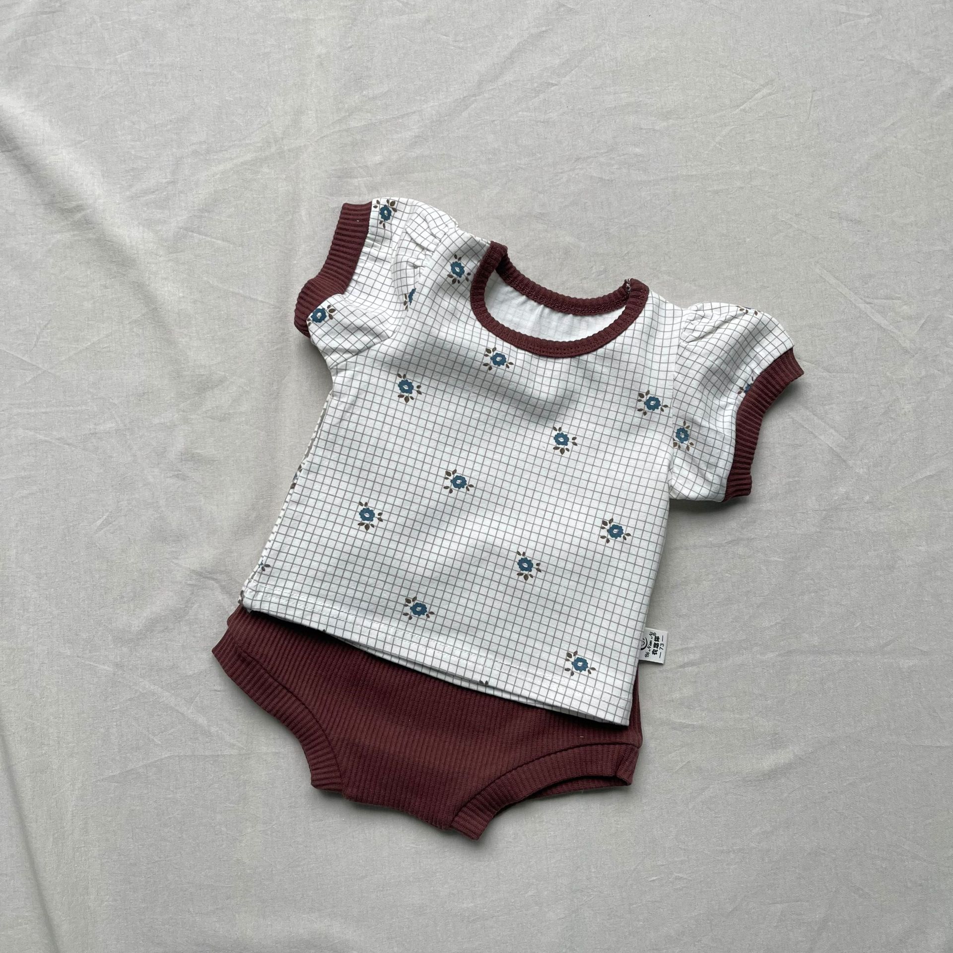 여름 소년과 소녀 아기 실 둥근 목 짧은 소매 꽃 티셔츠 반바지 투피스 세트 아기 홈 의류 세트 트렌디스토어 가기