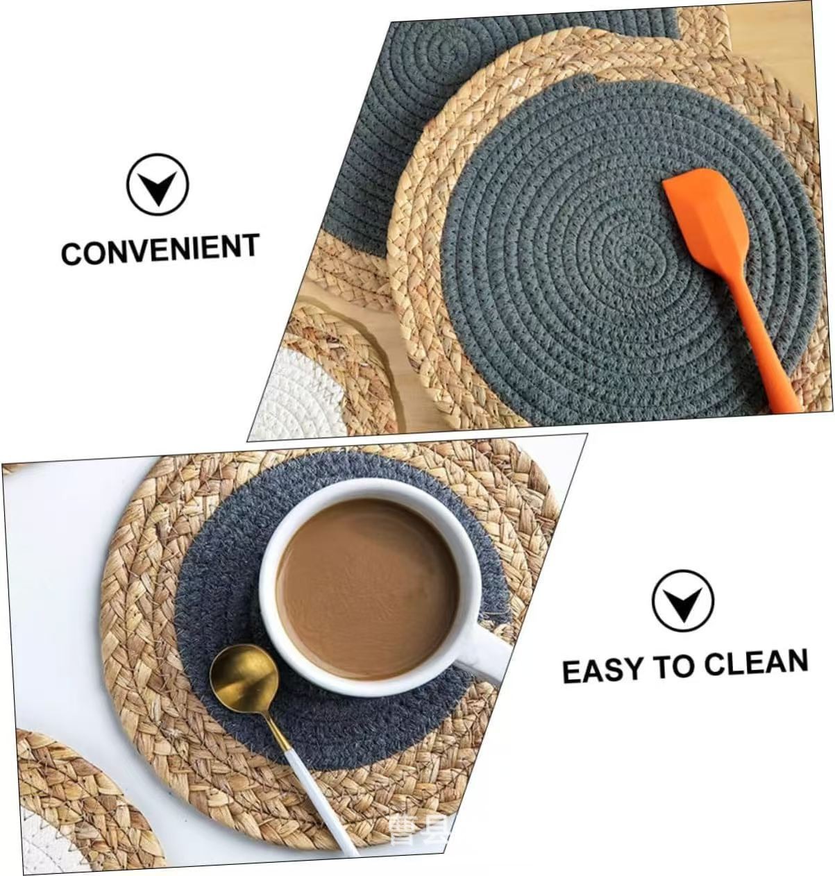 북유럽 스타일 라운드 밀짚 짠 면화 로프 식탁 매트 단열재 가정용 서양 식품 매트 안티 스케일 포트 매트 티 컵 매트