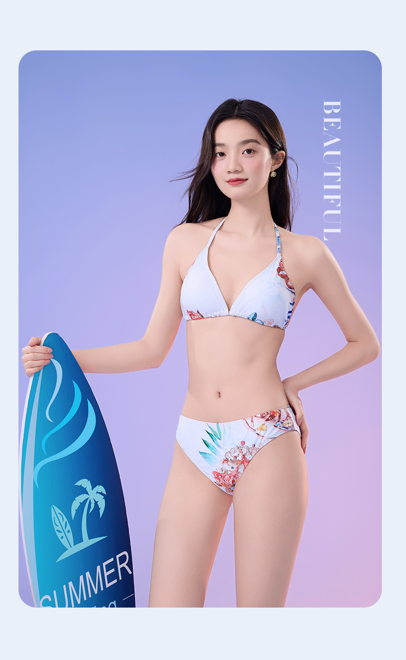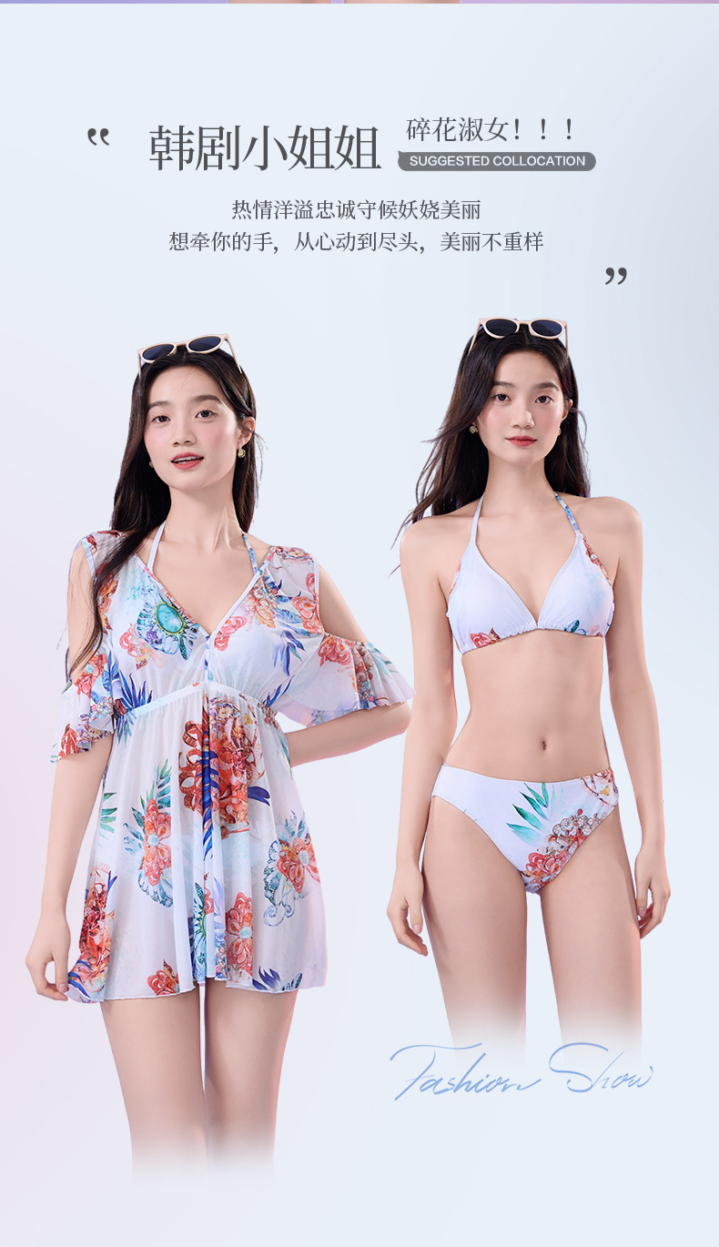 2025 일본 비키니 국경 유럽 및 미국 대외 무역 트라이앵글 컵 인쇄 레이스 업 섹시 비키니 수영복 여성스토어 가기