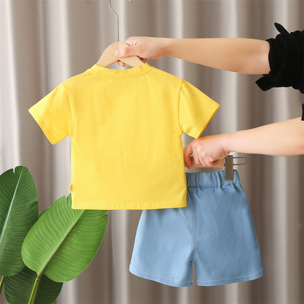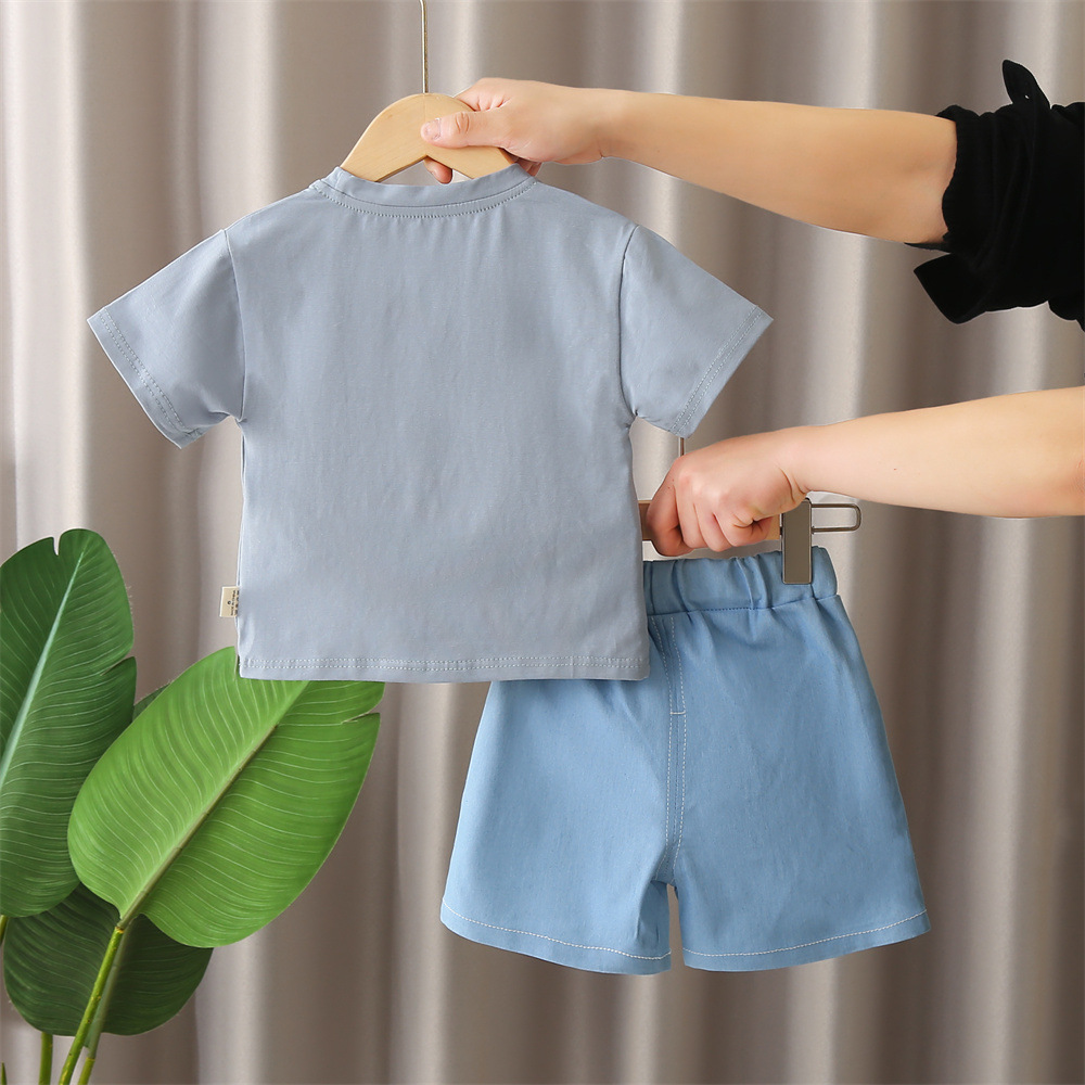 소년 여름 세트 새로운 아동복 아기 여름 어린이 얇은 래들 모자 개 반팔 세트 트렌디스토어 가기