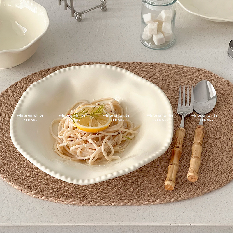 • 7inch 비즈 엣지 얕은 플레이트 크림 화이트
