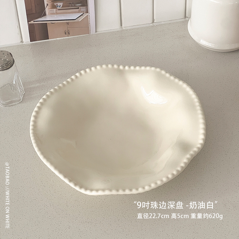• 9inch 비즈 엣지 딥 플레이트-크림 화이트