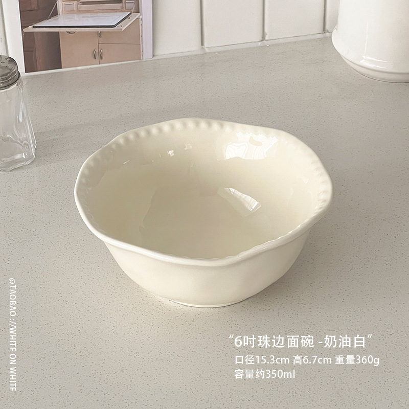 • 6inch 비즈면그릇 - 크림화이트