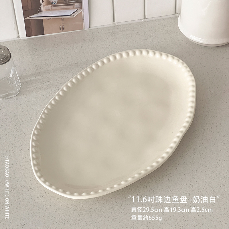 • 11.6inch 비즈 엣지 피쉬 플레이트 크림 화이트