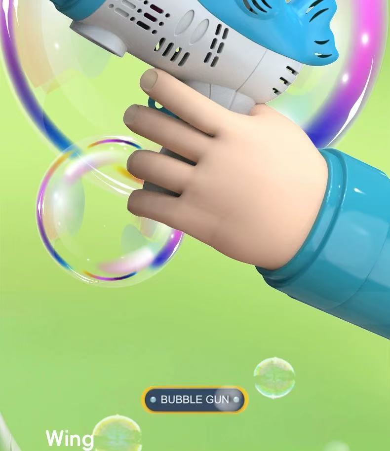 2025 새로운 만화 전기 거품 총 어린이 장난감 휴대용 돌고래 자동 다공성 그물 빨간 거품 기계