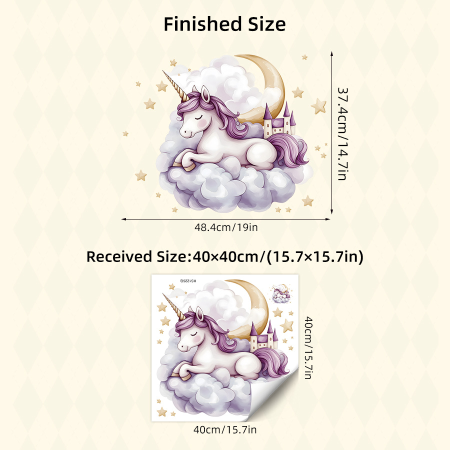 HS1226Q 만화 유니콘 구름 성 별이 빛나는 하늘 자체 접착 벽 스티커 침실 어린이 방 장식 스티커