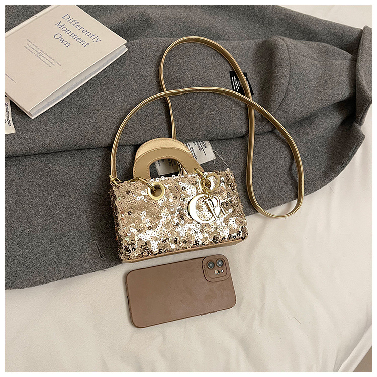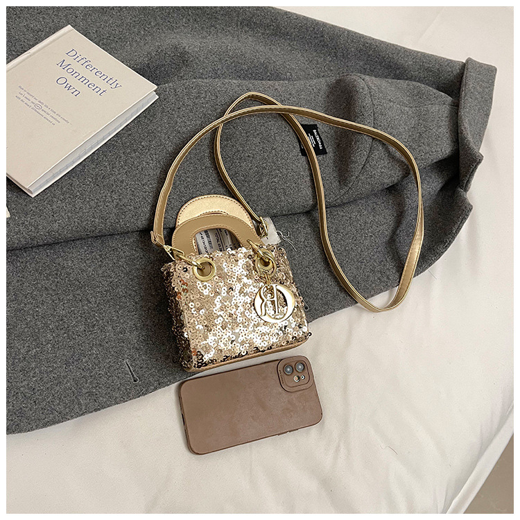 대외 무역 어린이 가방 간단한 패션 레트로 일광욕 가방 틈새 디자인 Sequin 휴대용 크로스 바디 립스틱 작은 사각형 가방