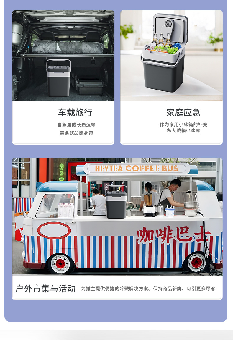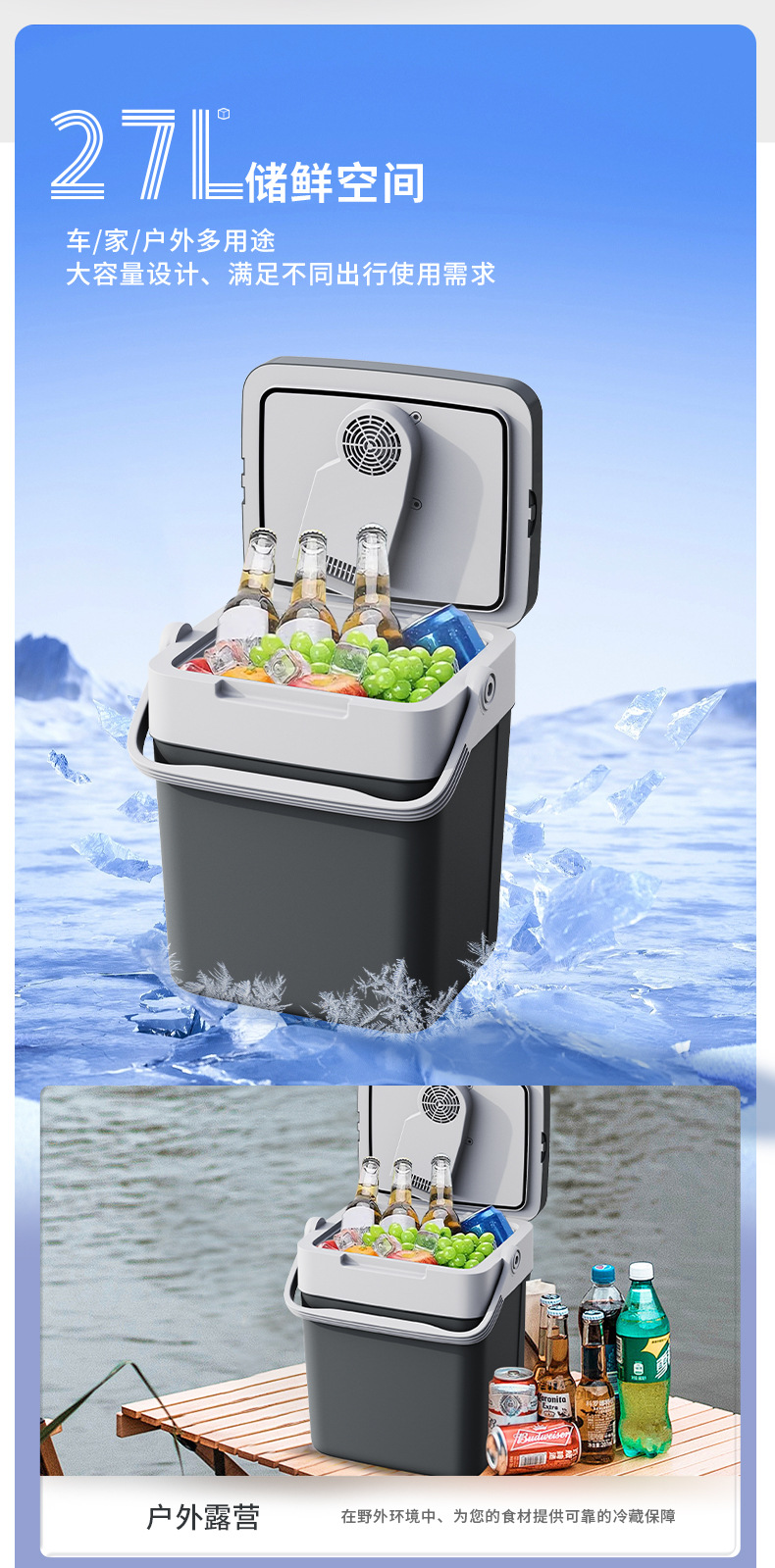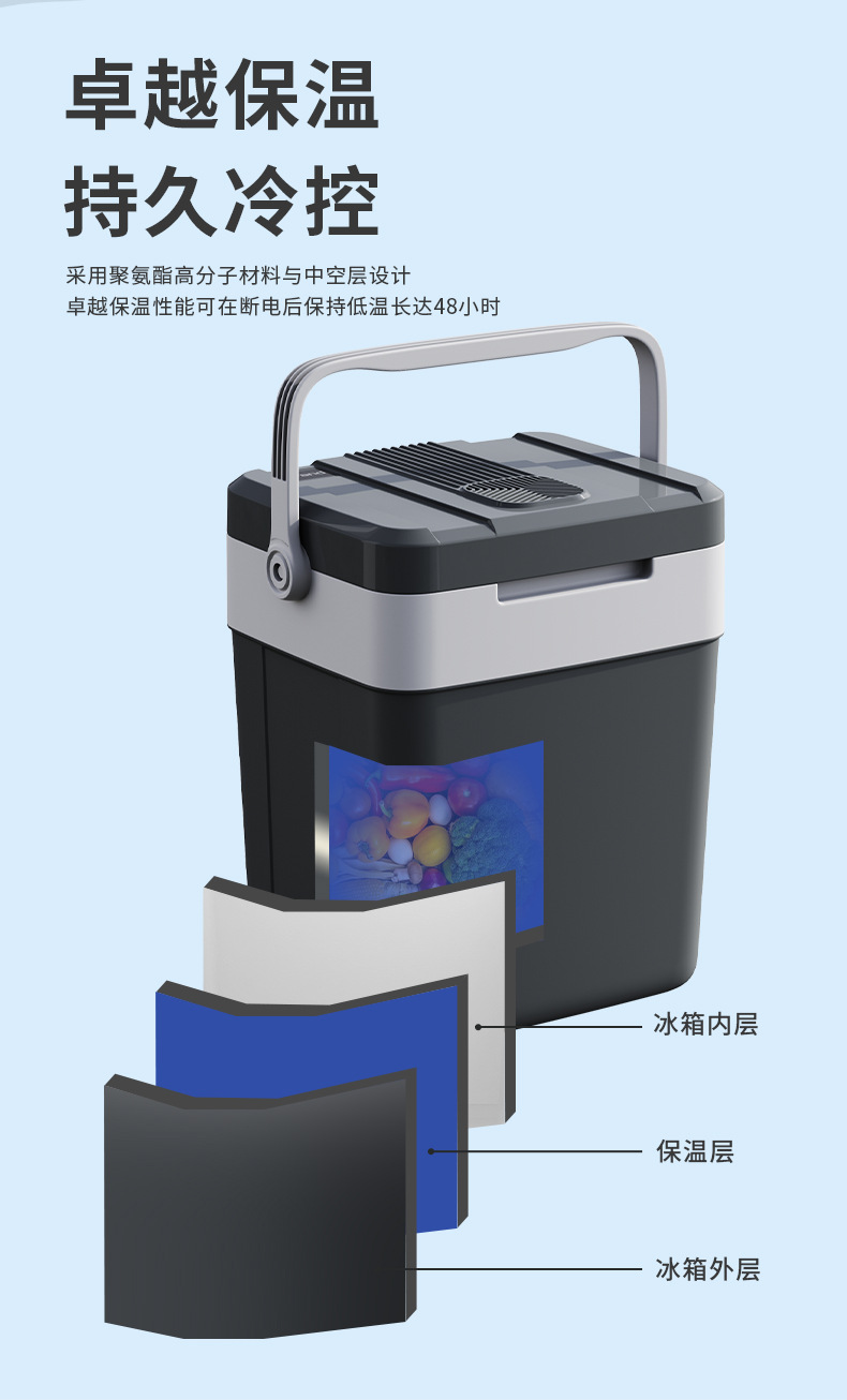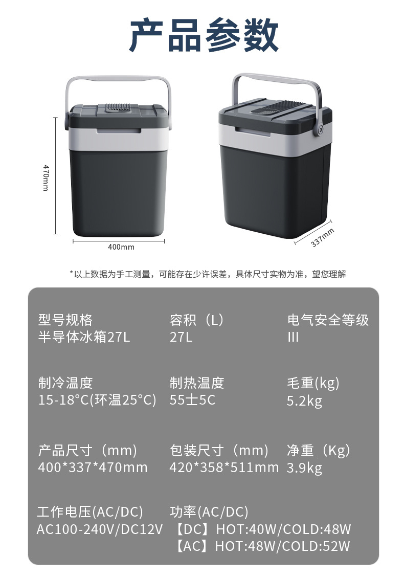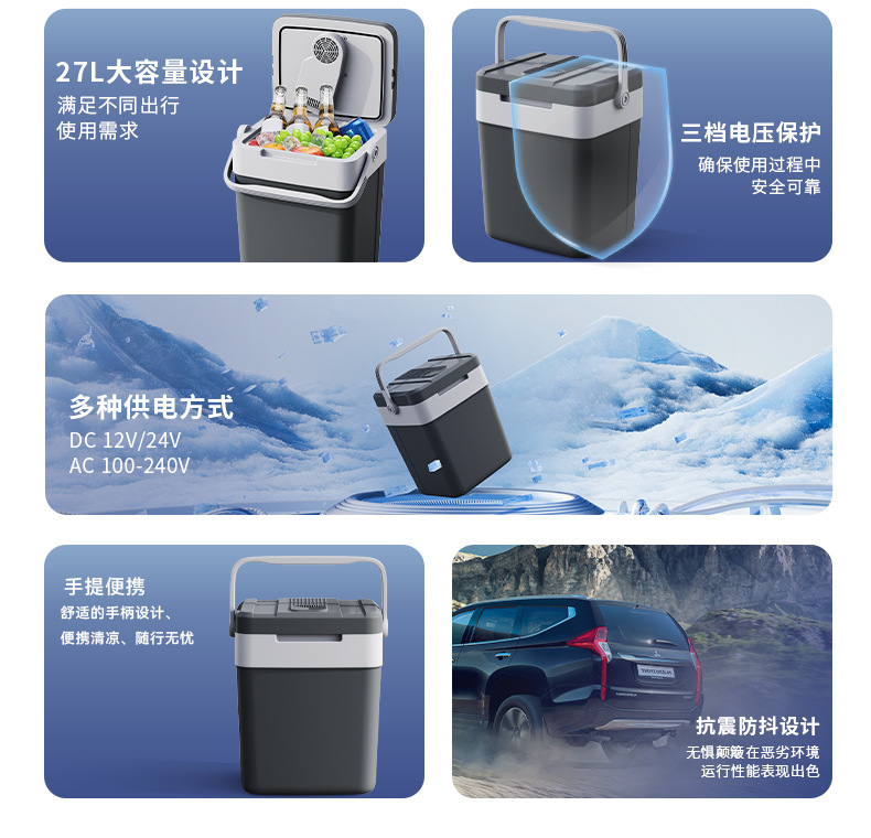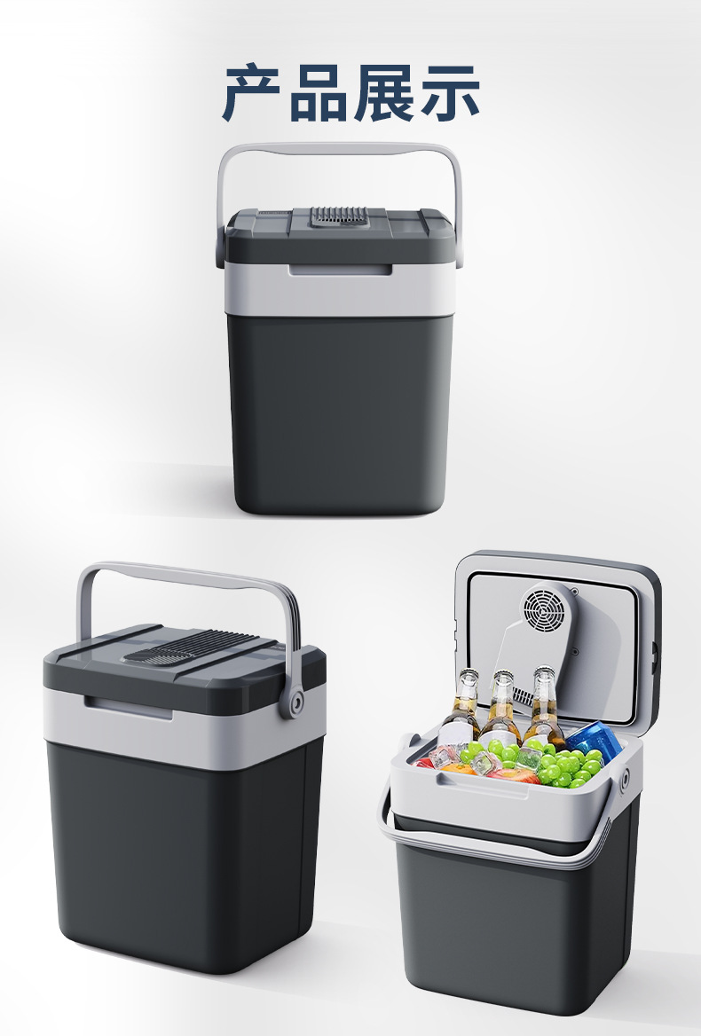 새로운 27L 야외 휴대용 자동차 냉장고 휴대용 난방 및 냉각 음료 상자 캠핑 자동차 냉장고