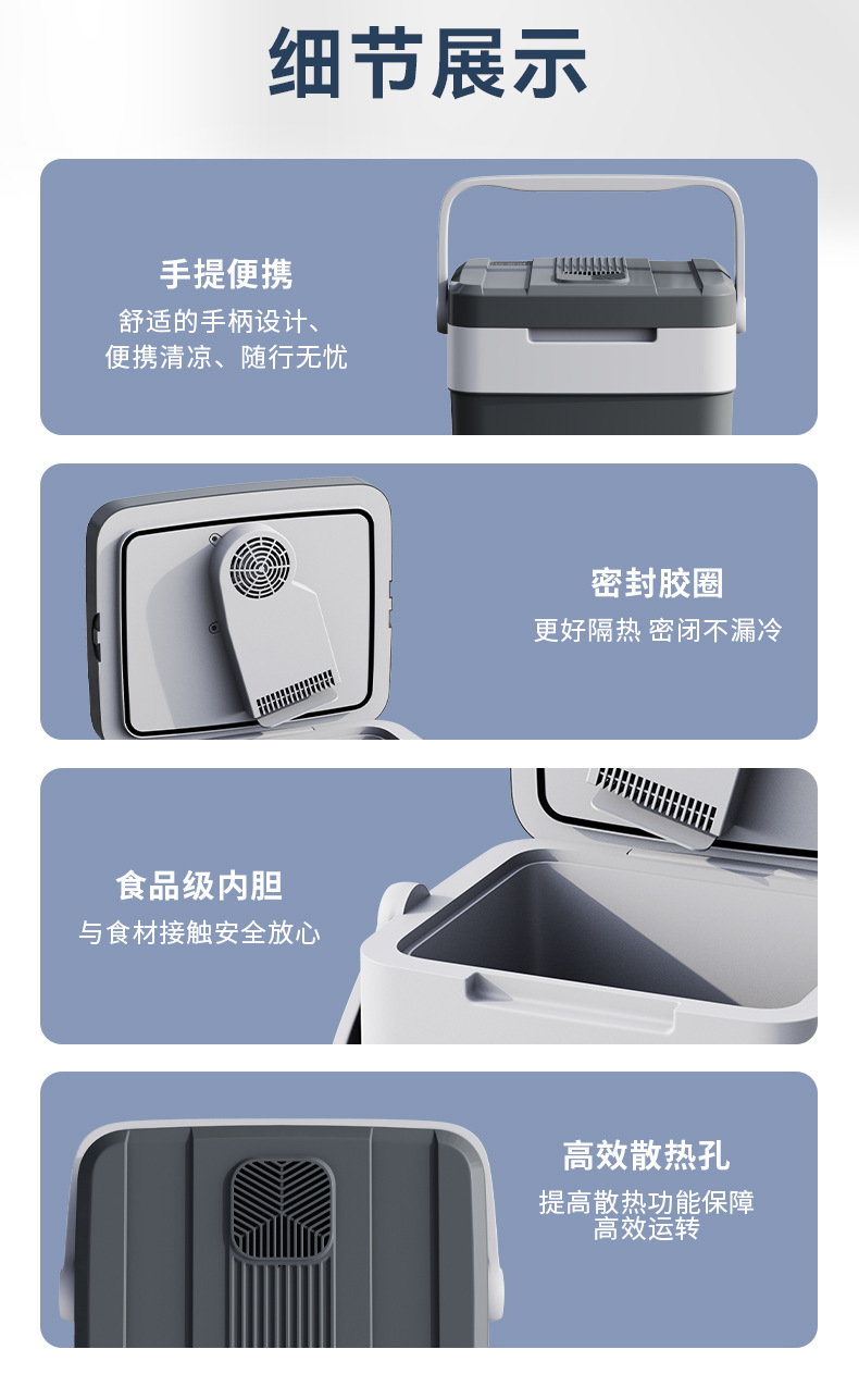 새로운 27L 야외 휴대용 자동차 냉장고 휴대용 난방 및 냉각 음료 상자 캠핑 자동차 냉장고스토어 가기