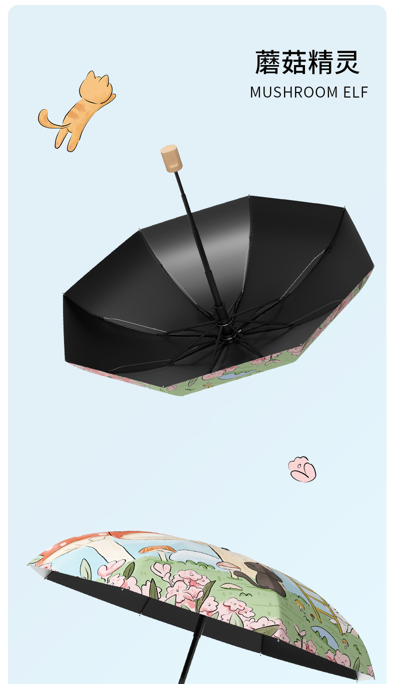 학생 신선한 어린이 우산 접히는 우산 블랙 고무 선 스크린 써니 우산 이중 목적 고가치 수동 휴대용스토어 가기