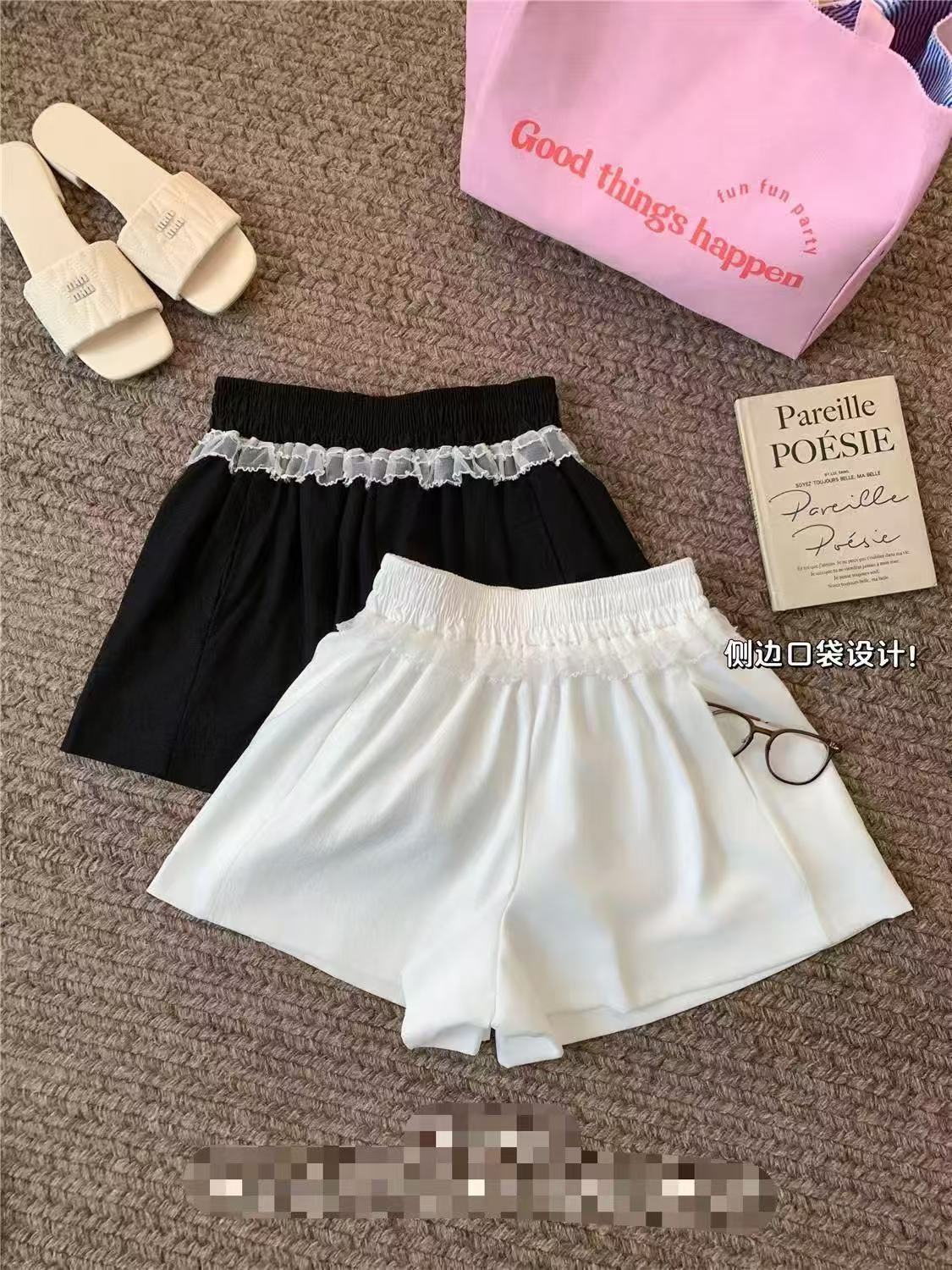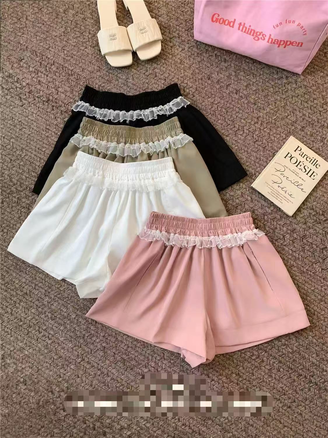 2025 새로운 달콤한 스타일 레이스 바느질 캐주얼 바지 반바지 여성의 여름 틈새 시대 감소 핫 바지스토어 가기