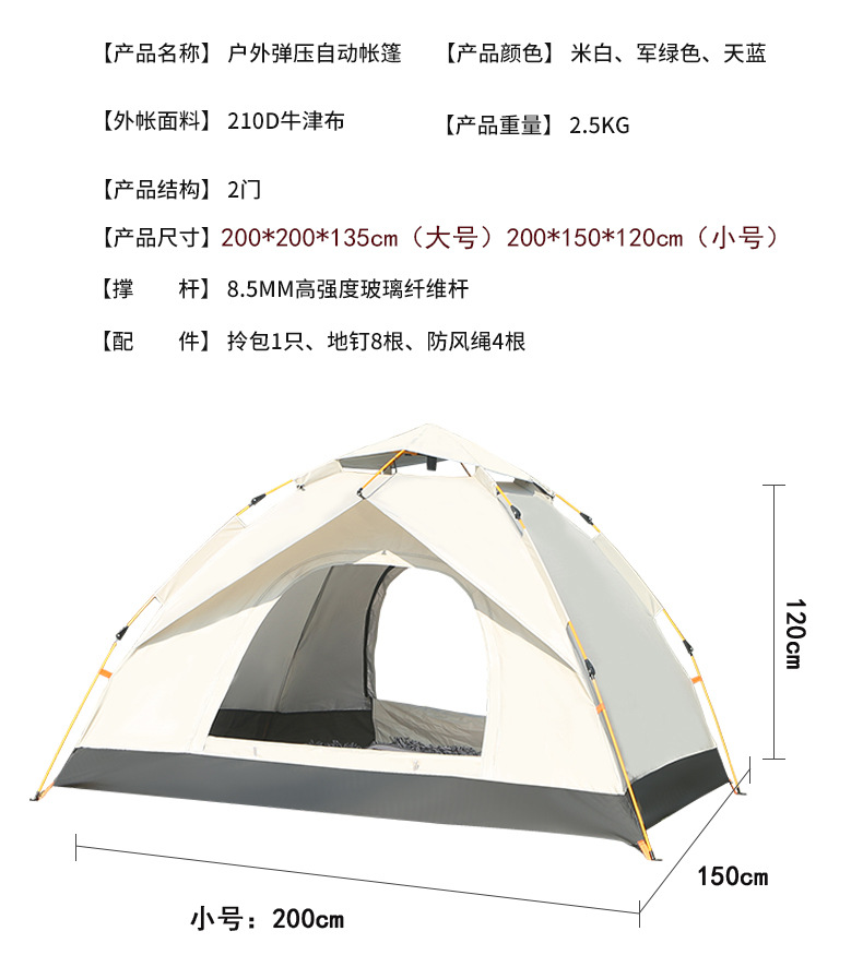 • 오토매틱 2인용 베이지 [문 2개, 창문 2개] + 방습쿠션 + 자동공기주입쿠션, 업그레이드된 두꺼워진 버전