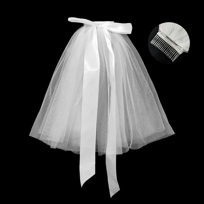 웨딩 원피스 머리 장식 신부 베일 사진 그물 빨간 셀카 간단한 슈퍼 요정 숲 흰색 커버 짧은 벌거 벗은 원사 제조 업체