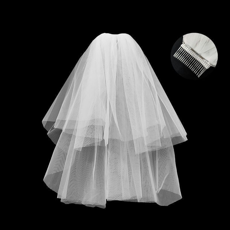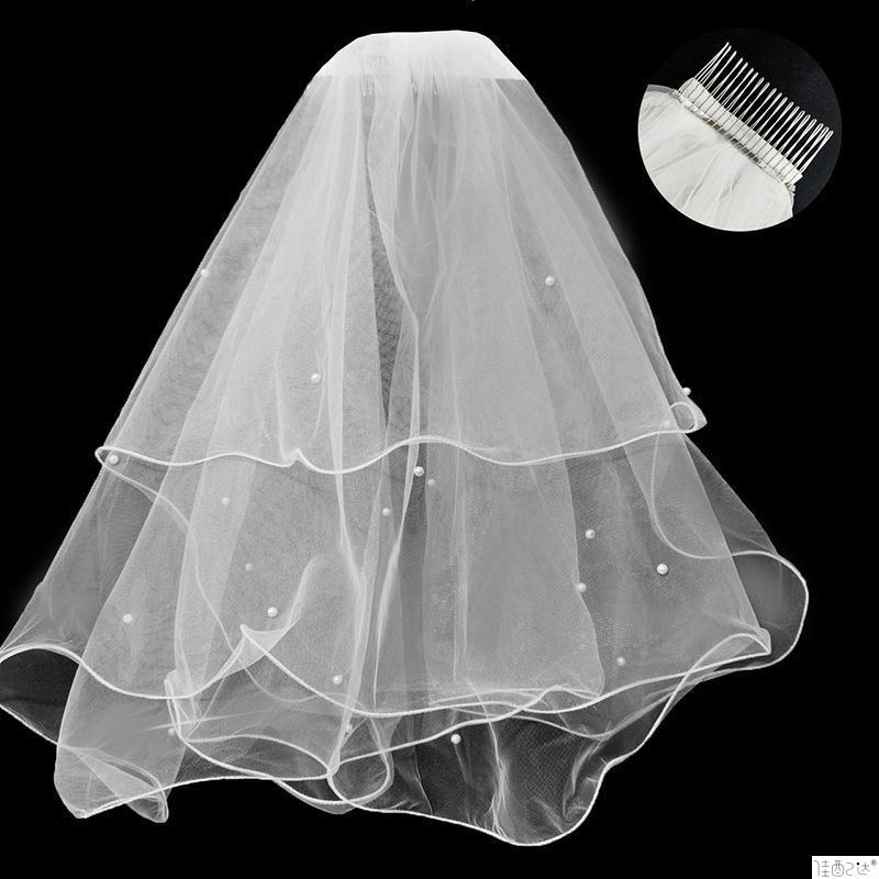 • 화이트 더블 레이어 베일(머리빗 포함 60-80cm)
