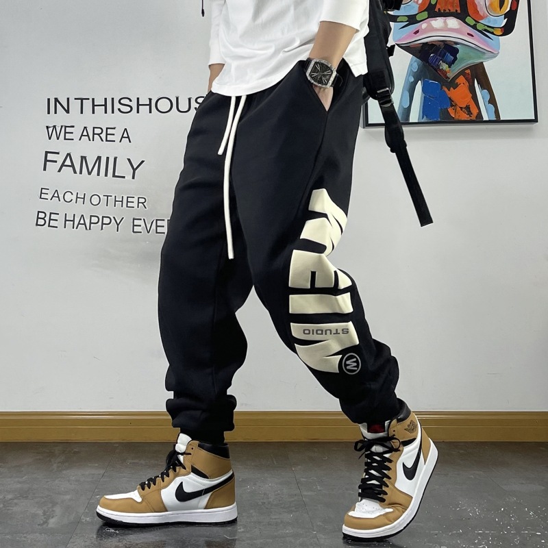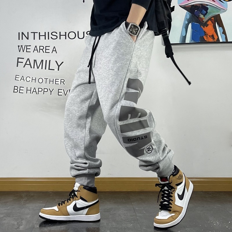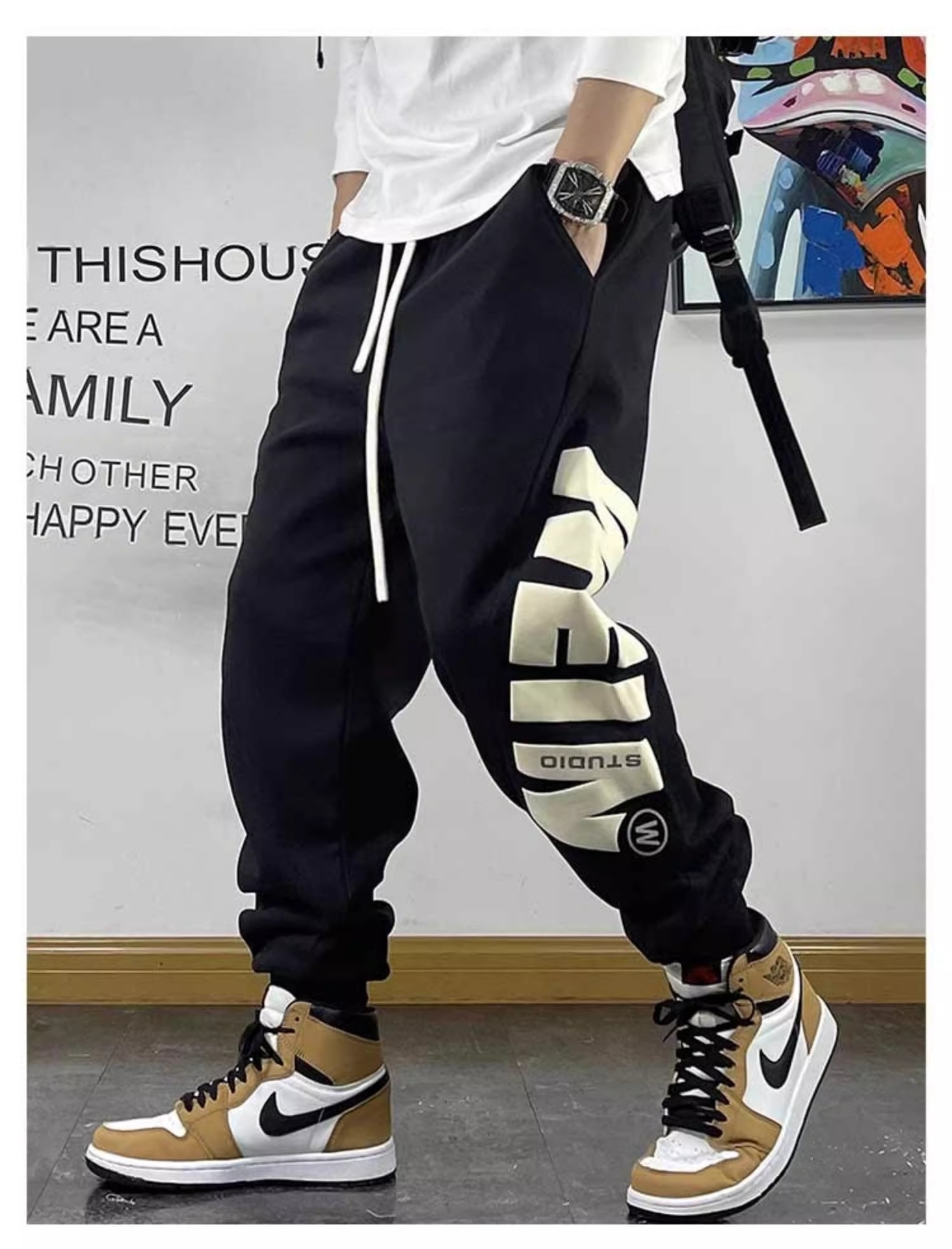 미국식 하이 엔드 더피 편지 인쇄 캐주얼 바지 남자 스포츠 바지 봄과 가을 느슨한 드로우 스트링 올 매치 바지스토어 가기