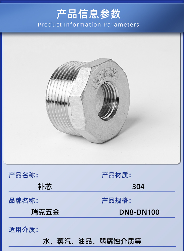 M & 304 스테인레스 스틸 코어 피팅 및 내부 및 외부 와이어 스레드 변환 Bu Shen 코어 피팅 및 감소 1 인치 6 포인트 4 포인트 조인트 감소스토어 가기