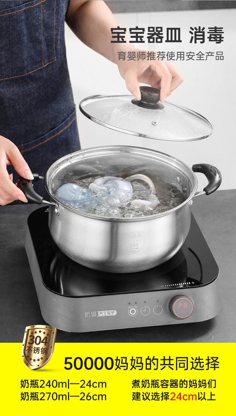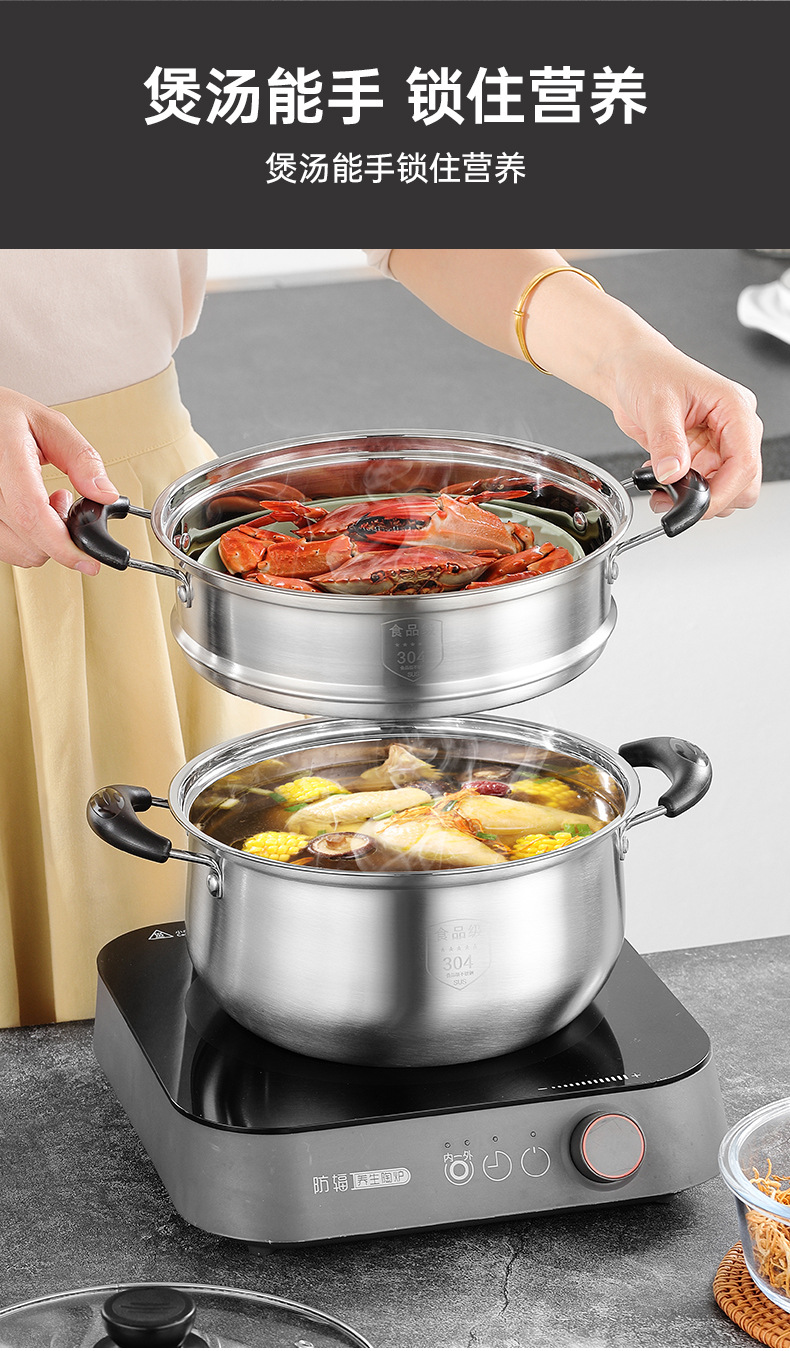 수프 냄비 304 스테인레스 스틸 두꺼운 두 배 귀 가정 요리 작은 냄비 기선 유도 밥솥 식품 학년