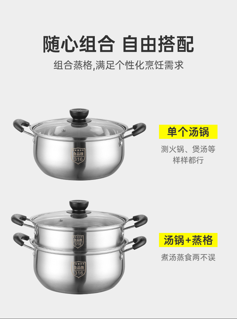 수프 냄비 304 스테인레스 스틸 두꺼운 두 배 귀 가정 요리 작은 냄비 기선 유도 밥솥 식품 학년스토어 가기