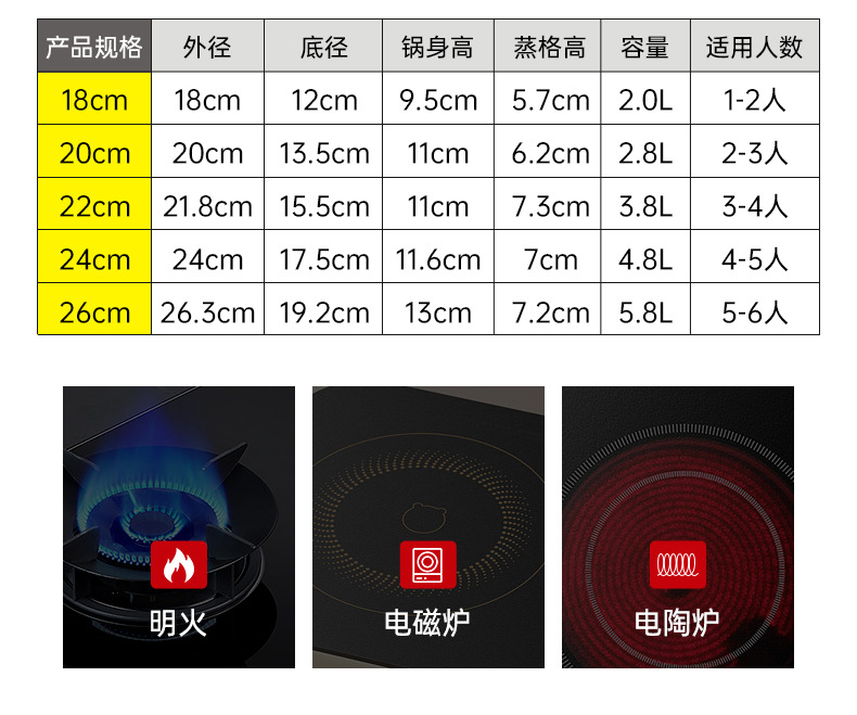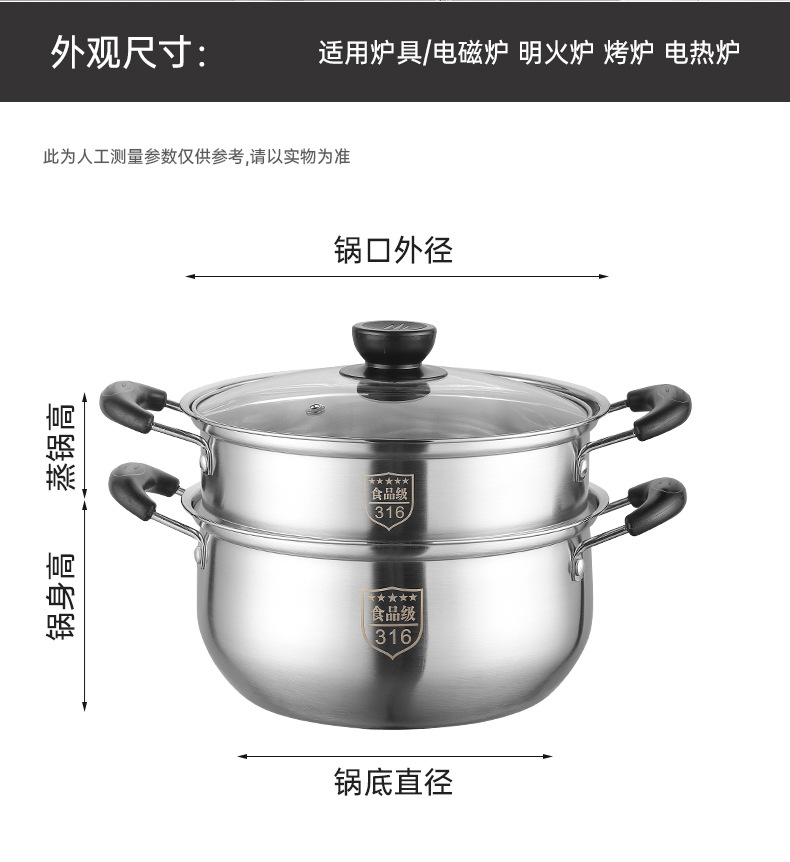 • [매우 두꺼운 316 스테인레스 스틸] 26cm + 스팀 그리드, 5-6인에게 적합