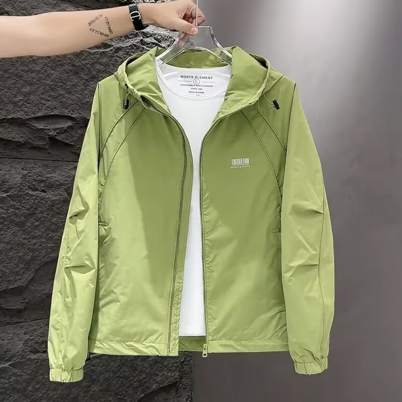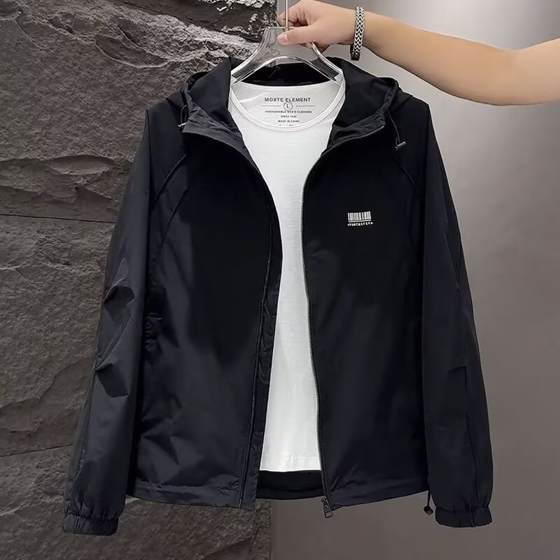 가을 착용 얇은 재킷 남자의 후드 재킷 2024 봄과 가을 새로운 패션 모든 경기 슬림 핏 크록 재킷