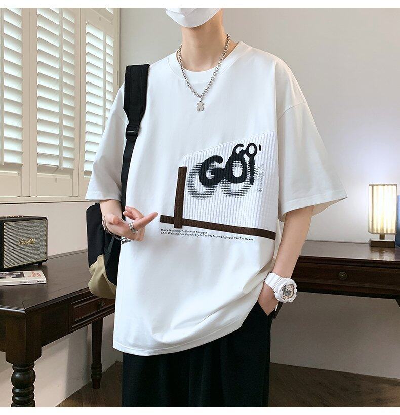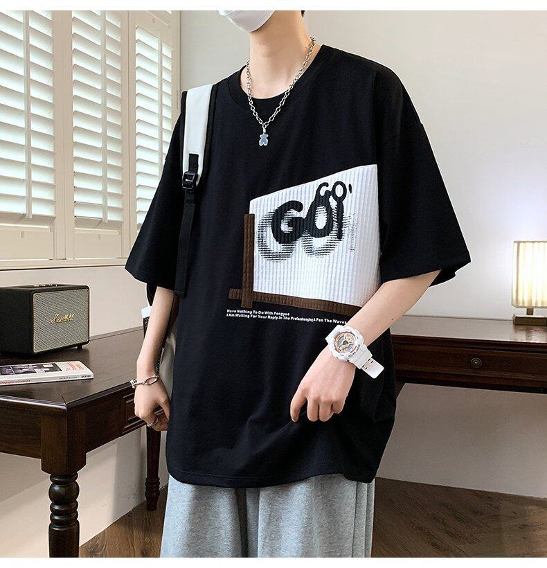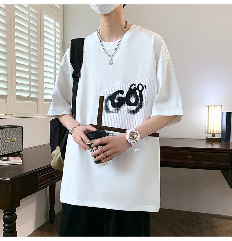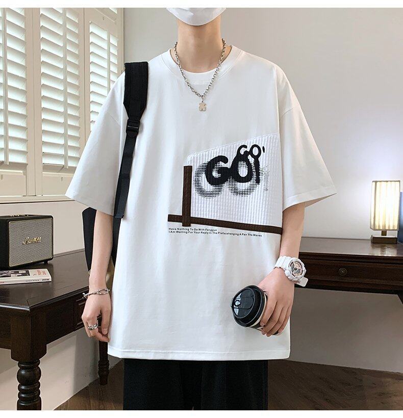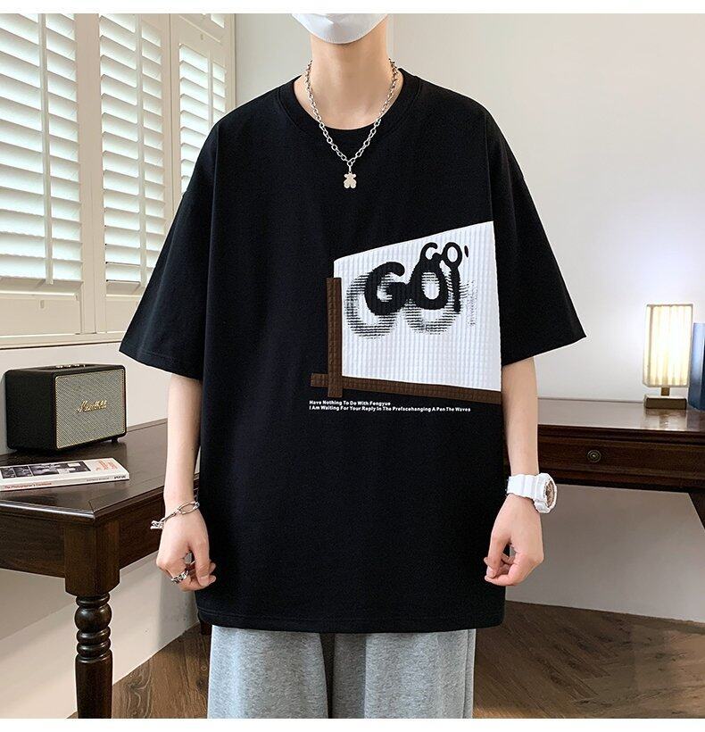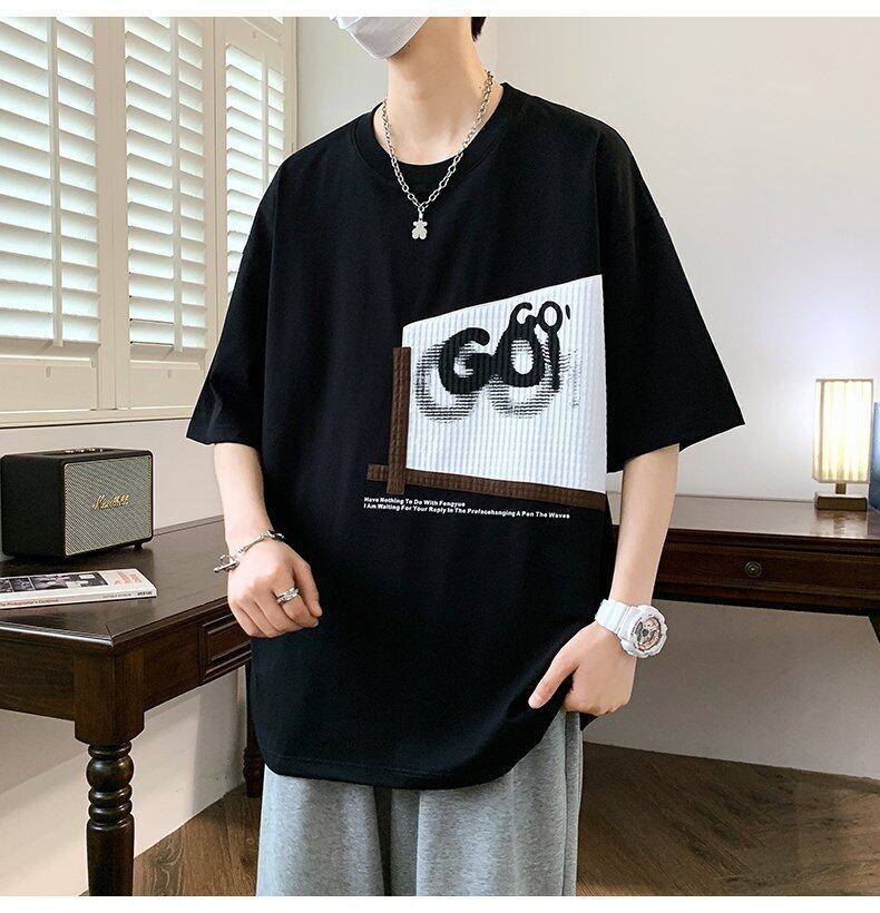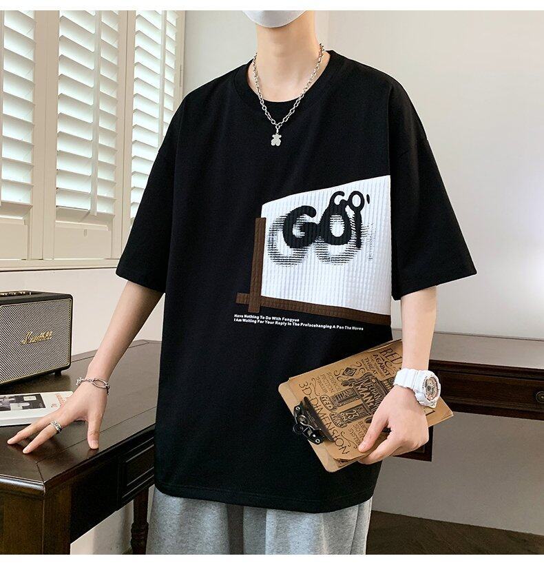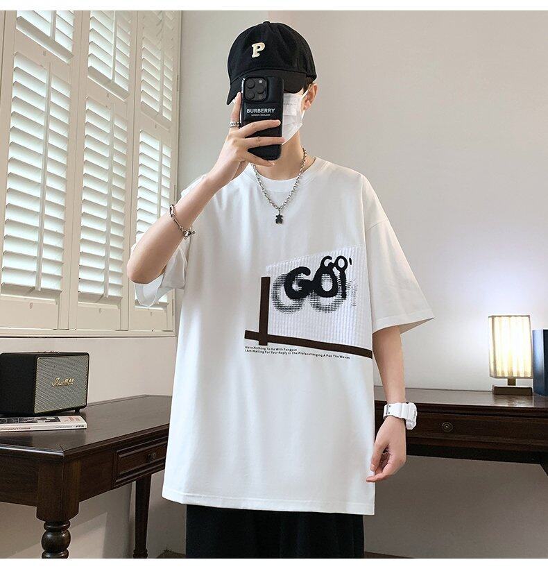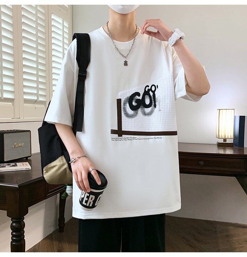 국경 간 무역 세대 AliExpress 인기 남성 의류 [신규] 여름 캐주얼 패션 티셔츠 남성용 반팔 바닥 셔츠스토어 가기