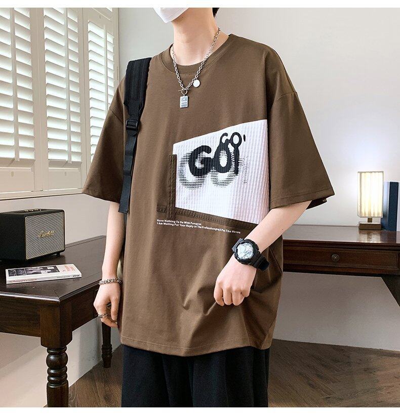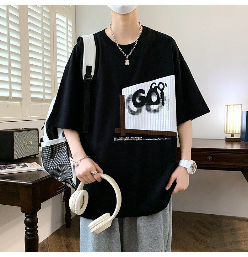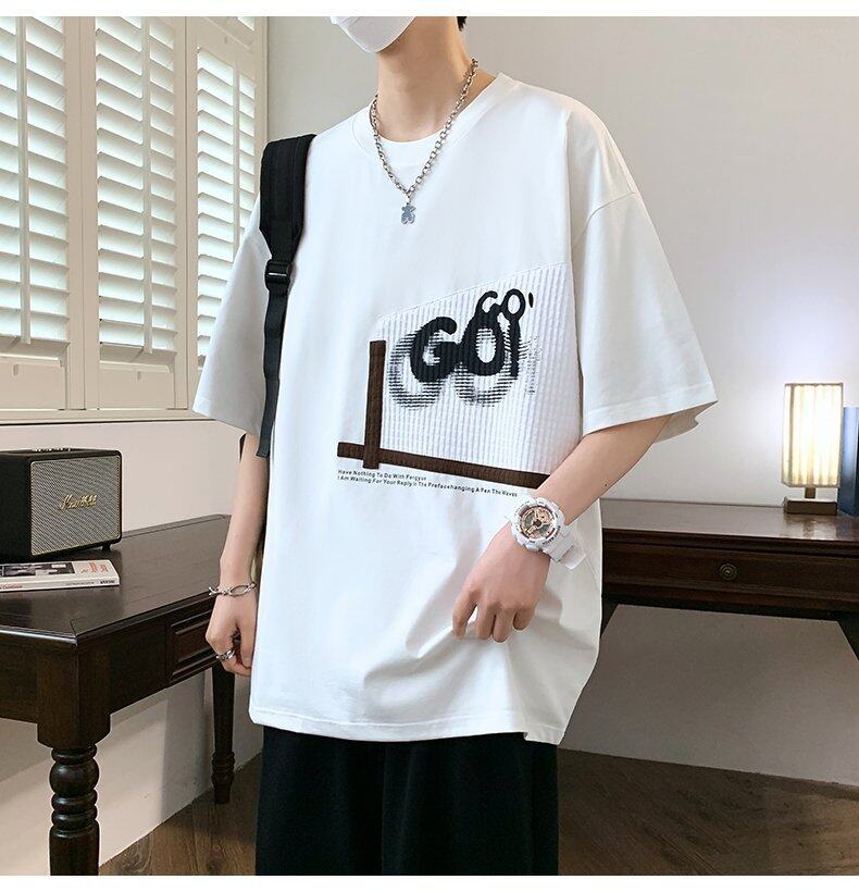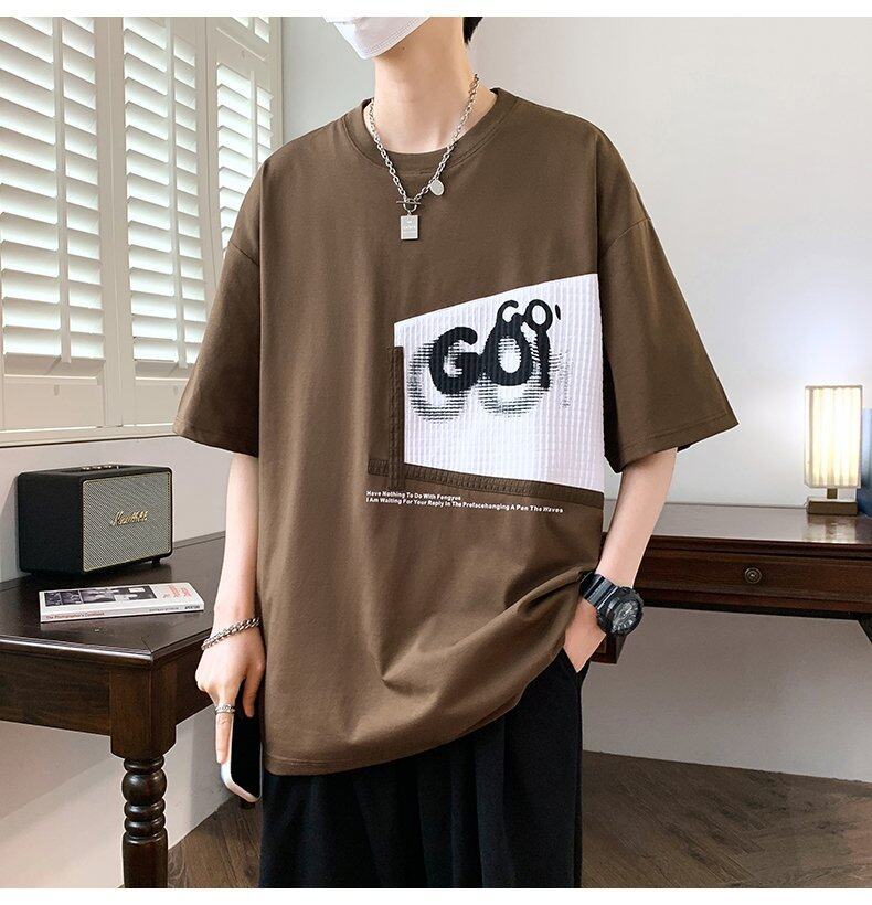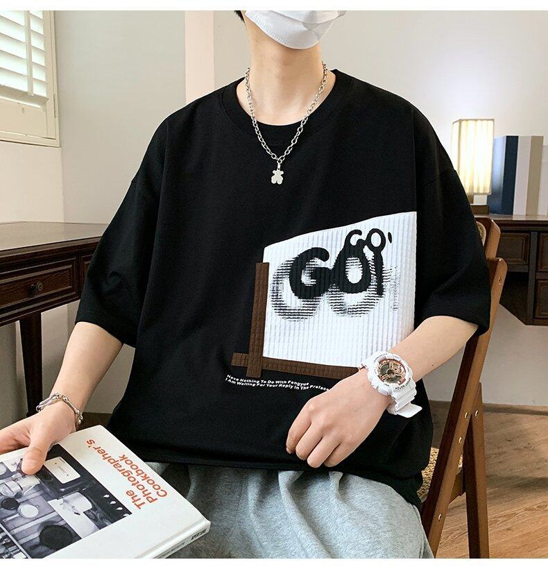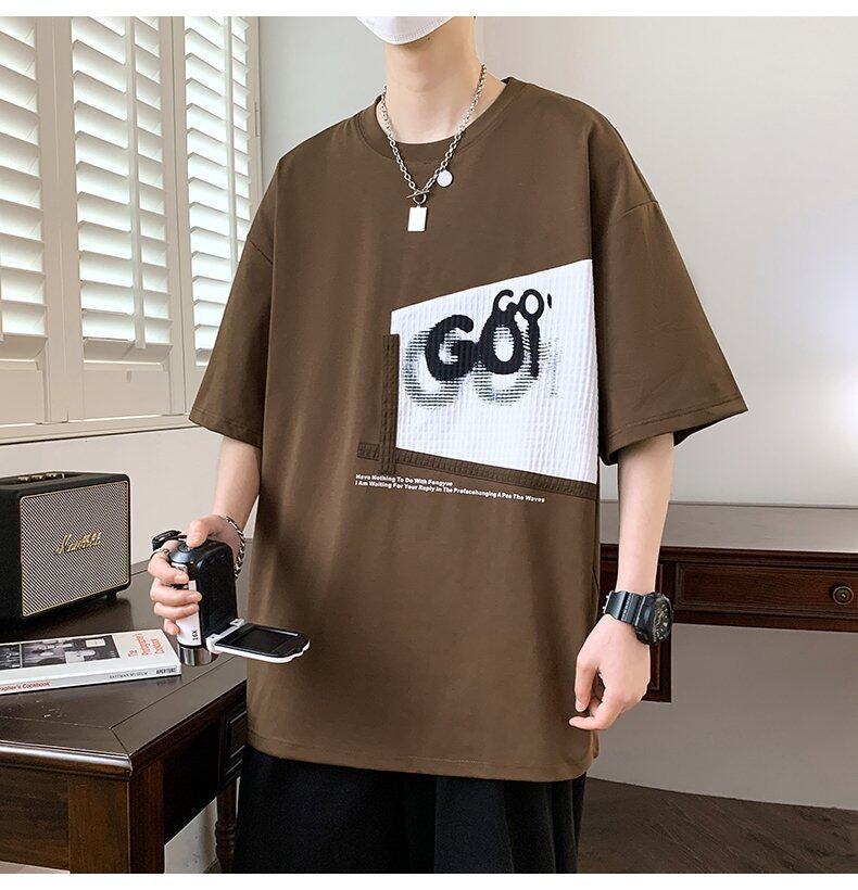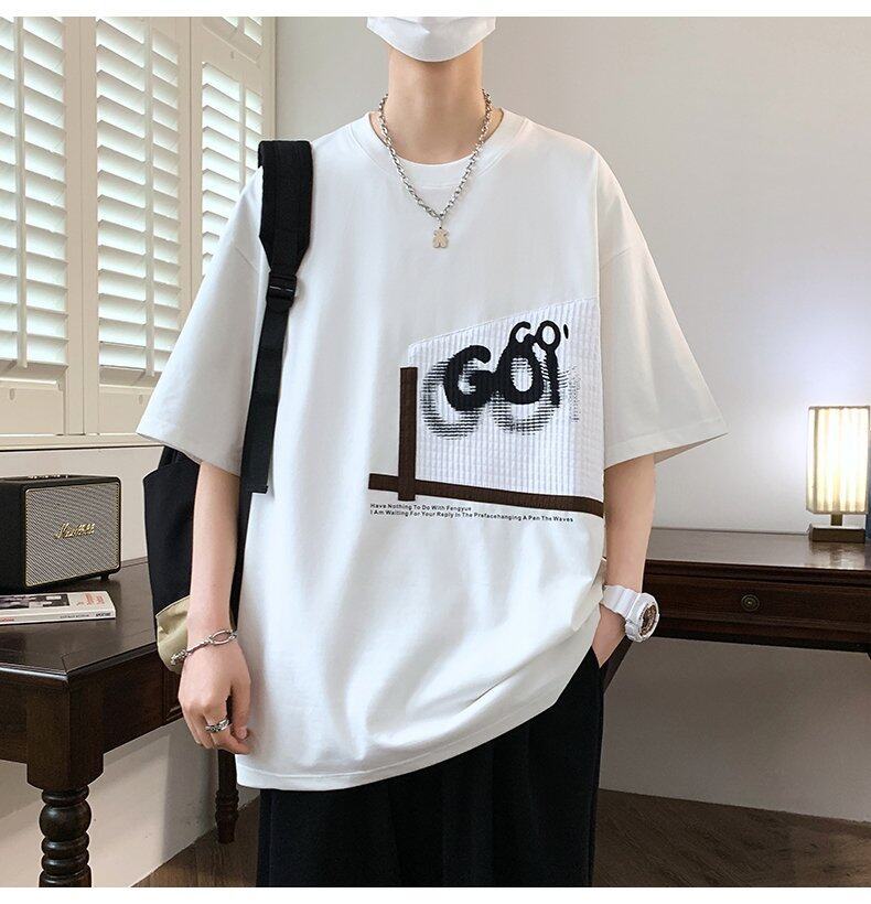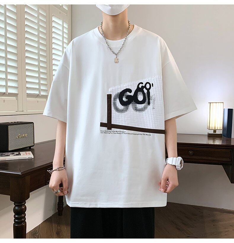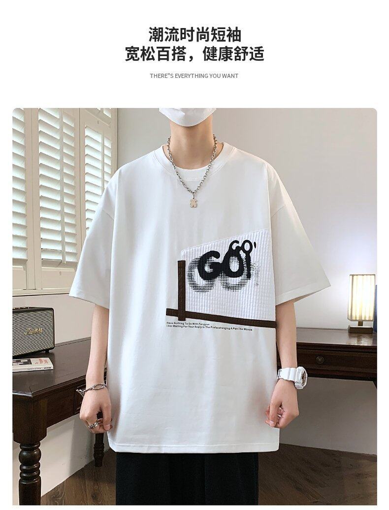 국경 간 무역 세대 AliExpress 인기 남성 의류 [신규] 여름 캐주얼 패션 티셔츠 남성용 반팔 바닥 셔츠스토어 가기
