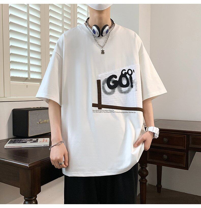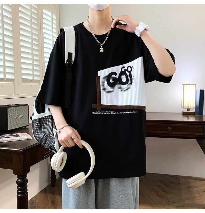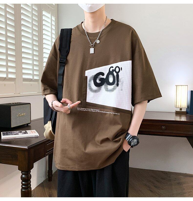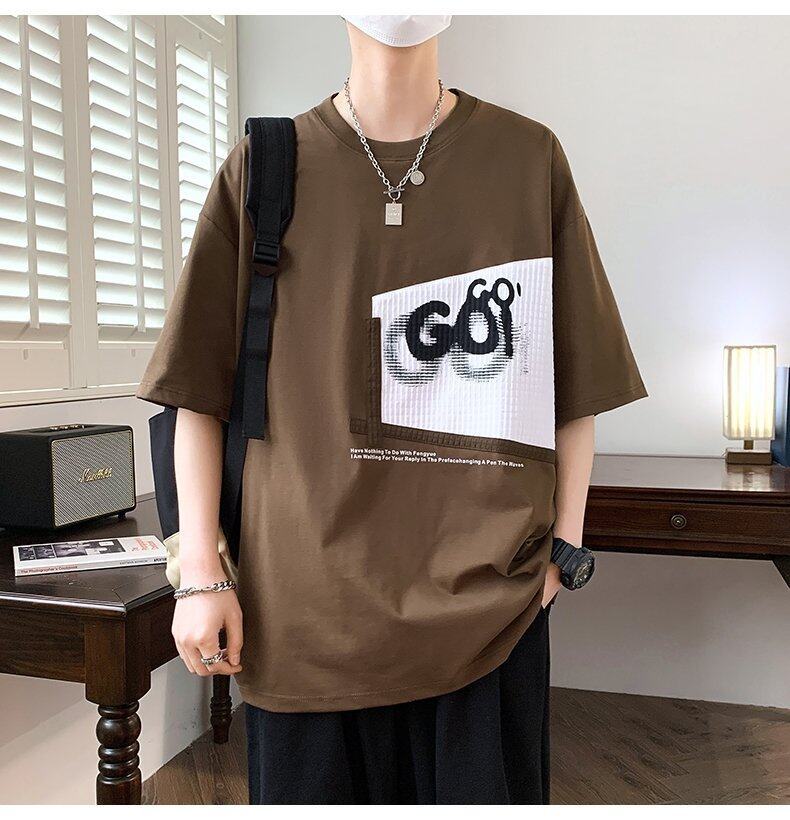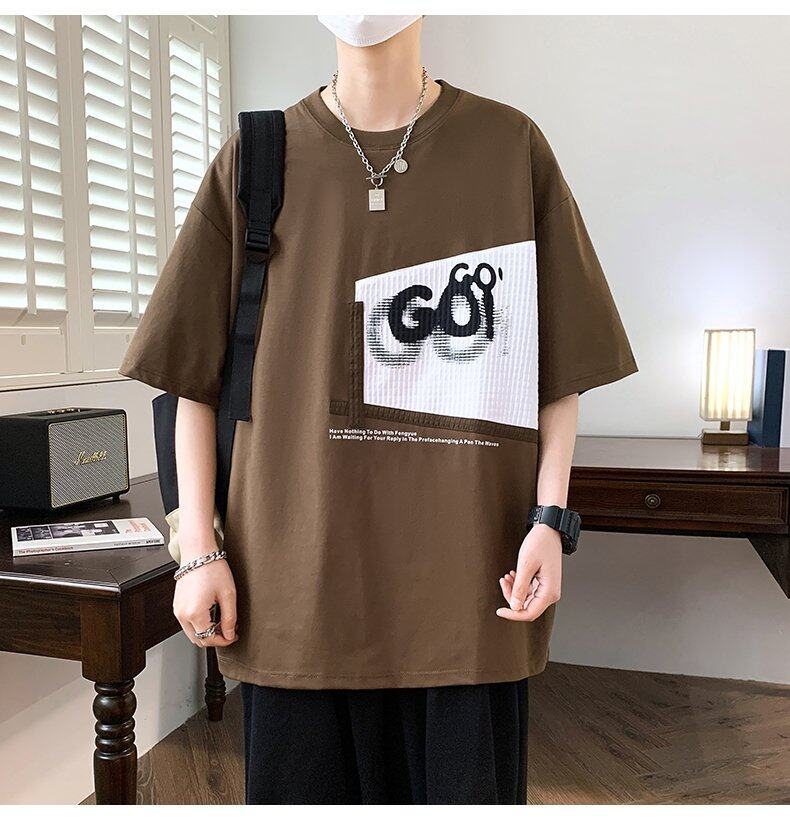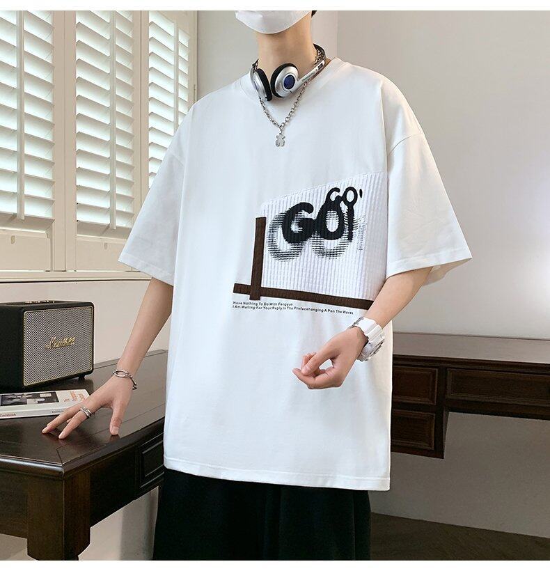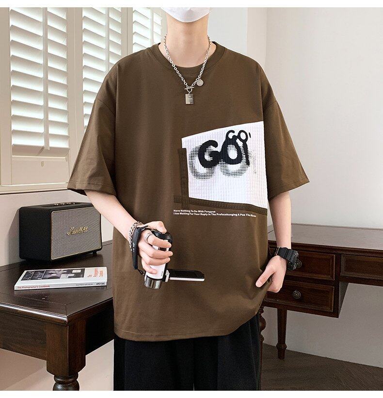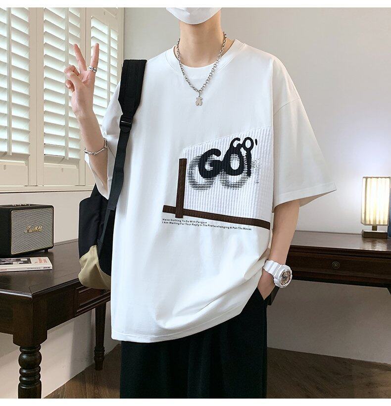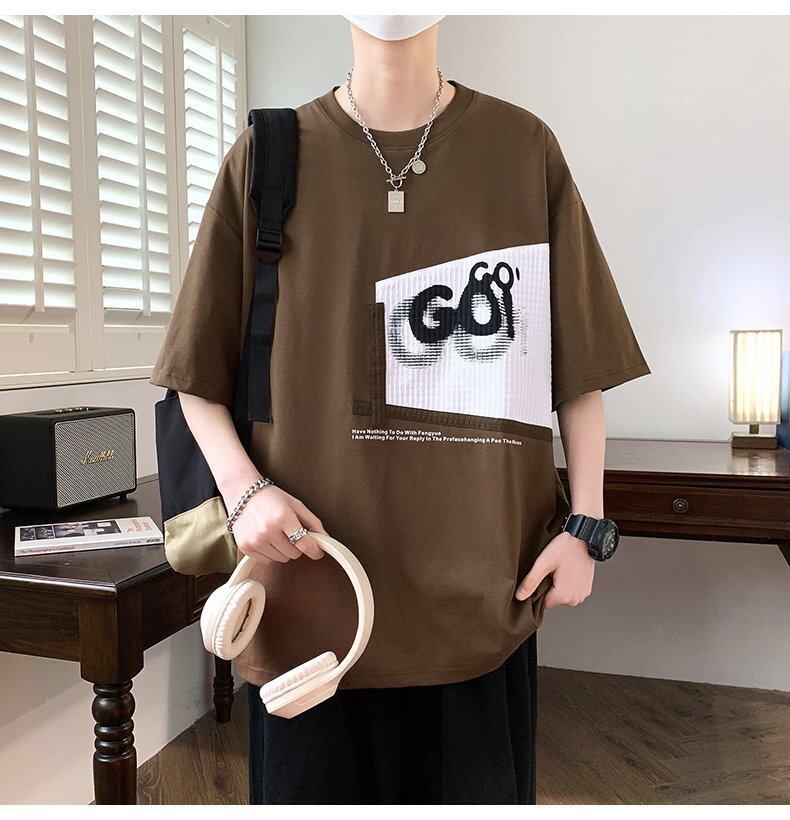 국경 간 무역 세대 AliExpress 인기 남성 의류 [신규] 여름 캐주얼 패션 티셔츠 남성용 반팔 바닥 셔츠스토어 가기