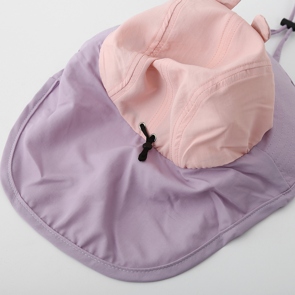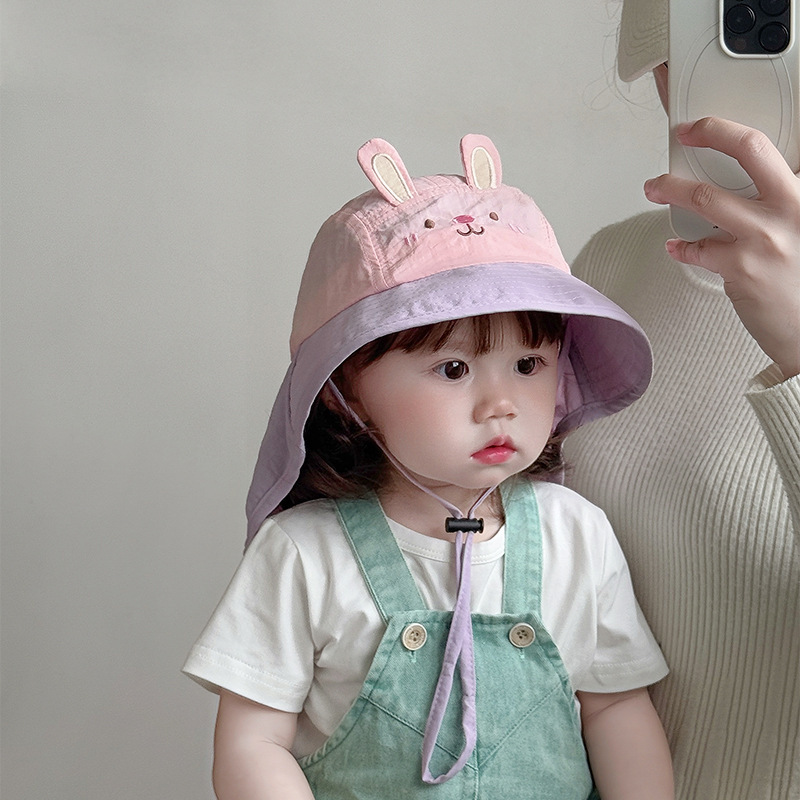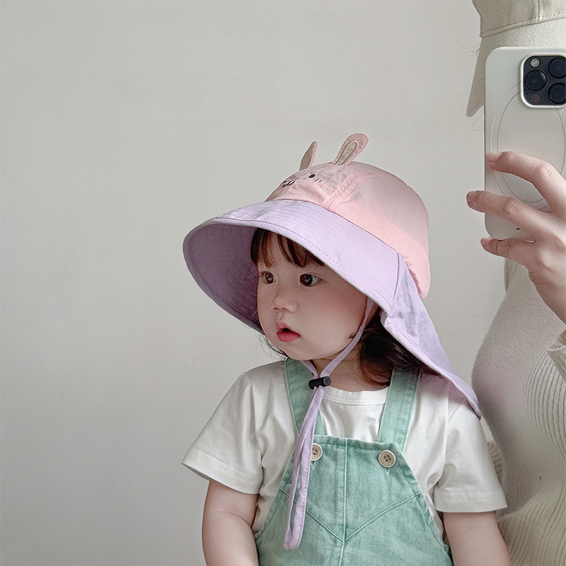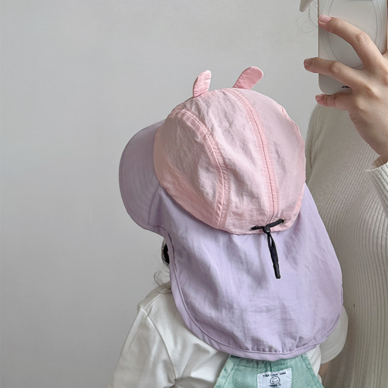 아기 모자 봄과 여름 어린이 여행을위한 목도리와 함께 얇은 빠른 건조 통기성 선 스크린 모자 큰 귀 목 햇살 모자 한국어