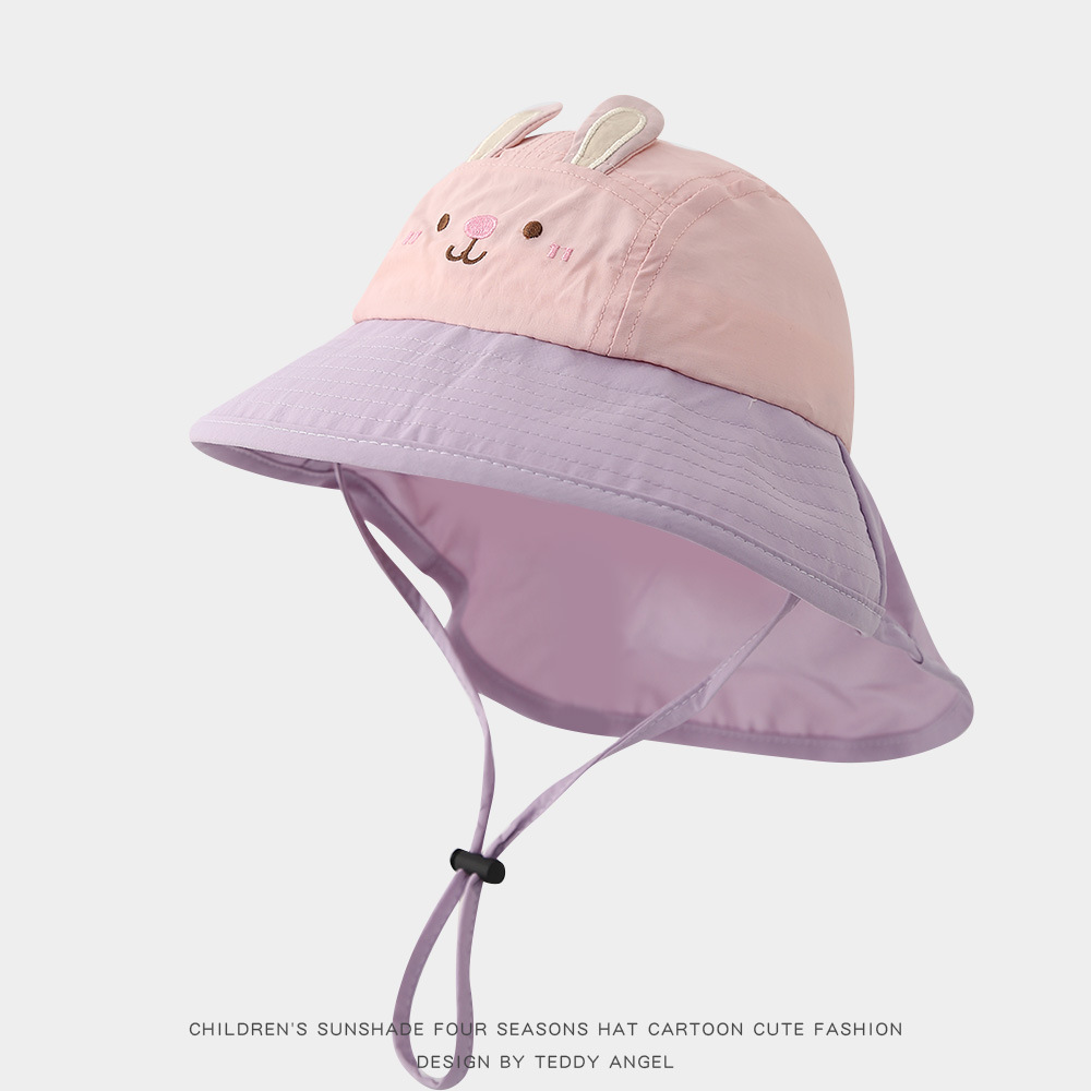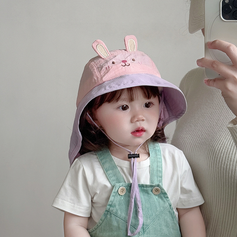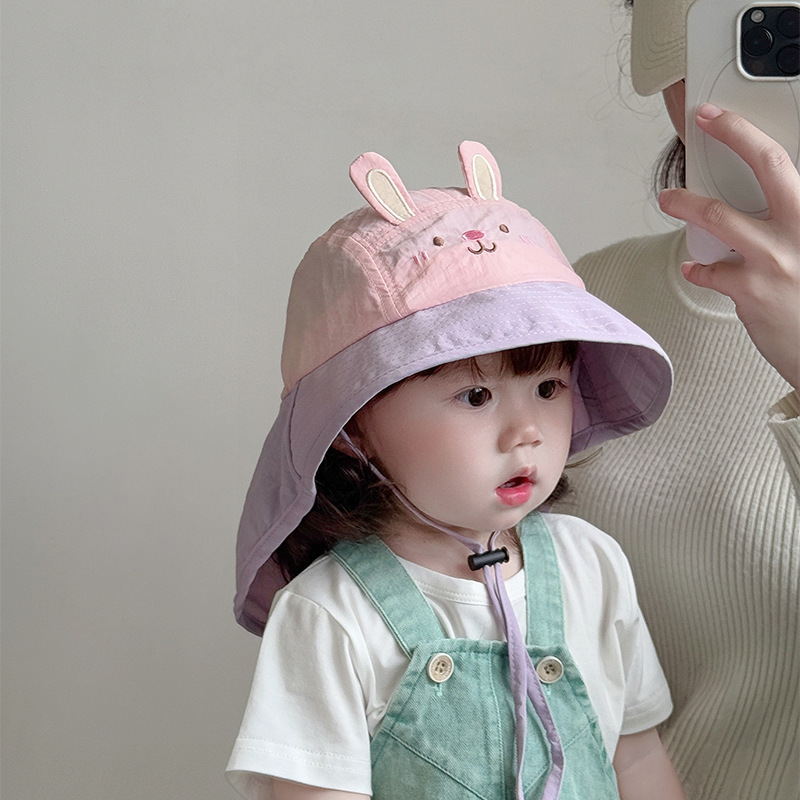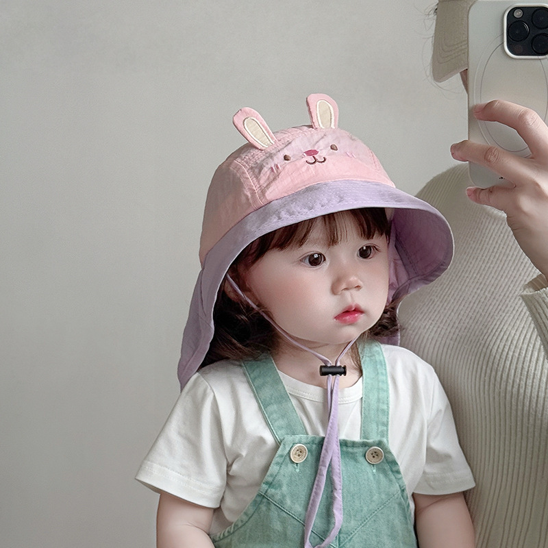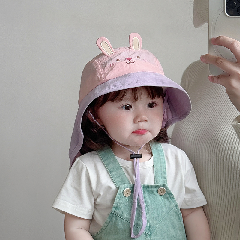 아기 모자 봄과 여름 어린이 여행을위한 목도리와 함께 얇은 빠른 건조 통기성 선 스크린 모자 큰 귀 목 햇살 모자 한국어