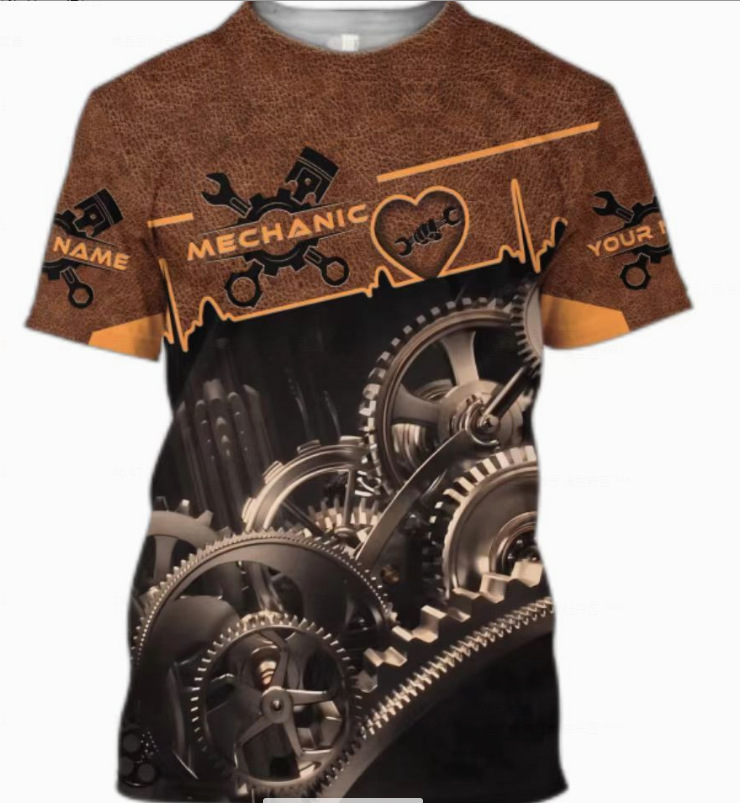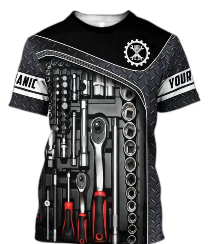TEMU 국경 재미있는 성격 티셔츠 3D 디지털 스크루 드라이버 인쇄 짧은 소매 뜨거운 남자의 둥근 목 탑