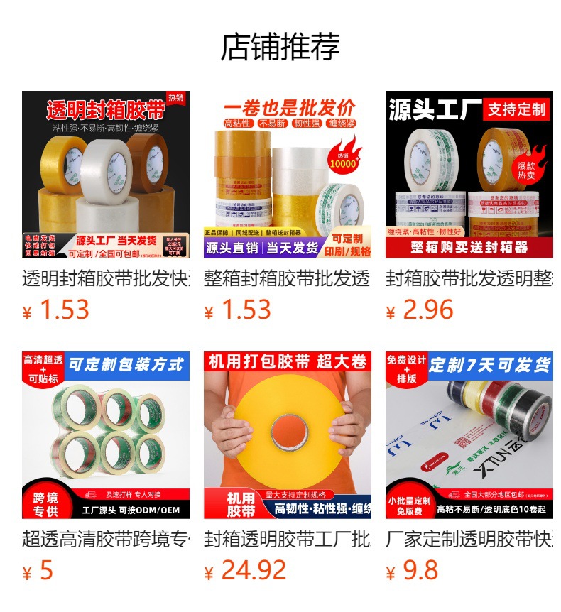 8CM 넓은 노란색 테이프 투명 밀봉 상자 풀 박스 도매 대형 롤 밀봉 접착 종이 끈적 끈적한 강한 포장 테이프스토어 가기
