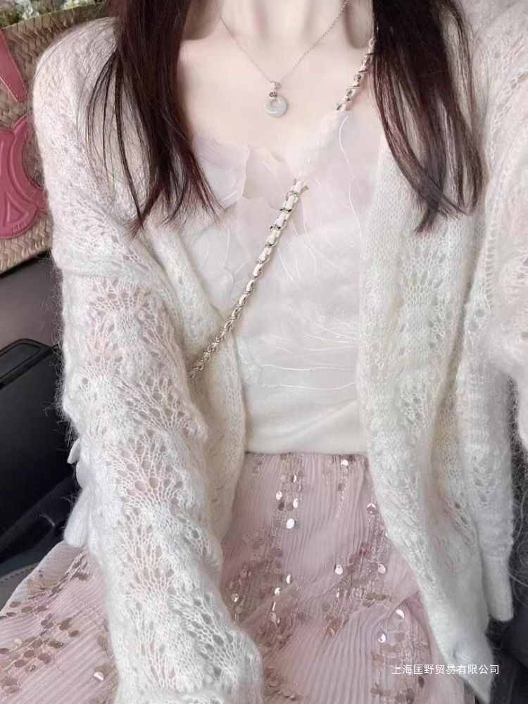 프랑스 스타일 작은 샤넬 스타일 니트 카디건 여성의 얇은 부드러운 스타일 소프트 왁스 할로우 스타일 달콤한 스웨터 재킷