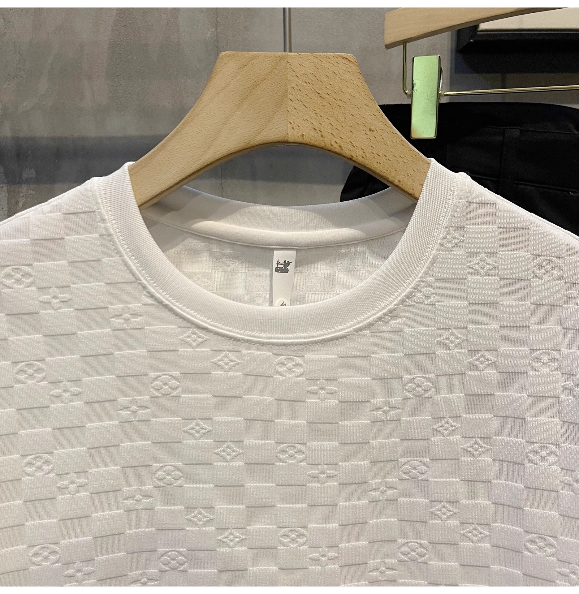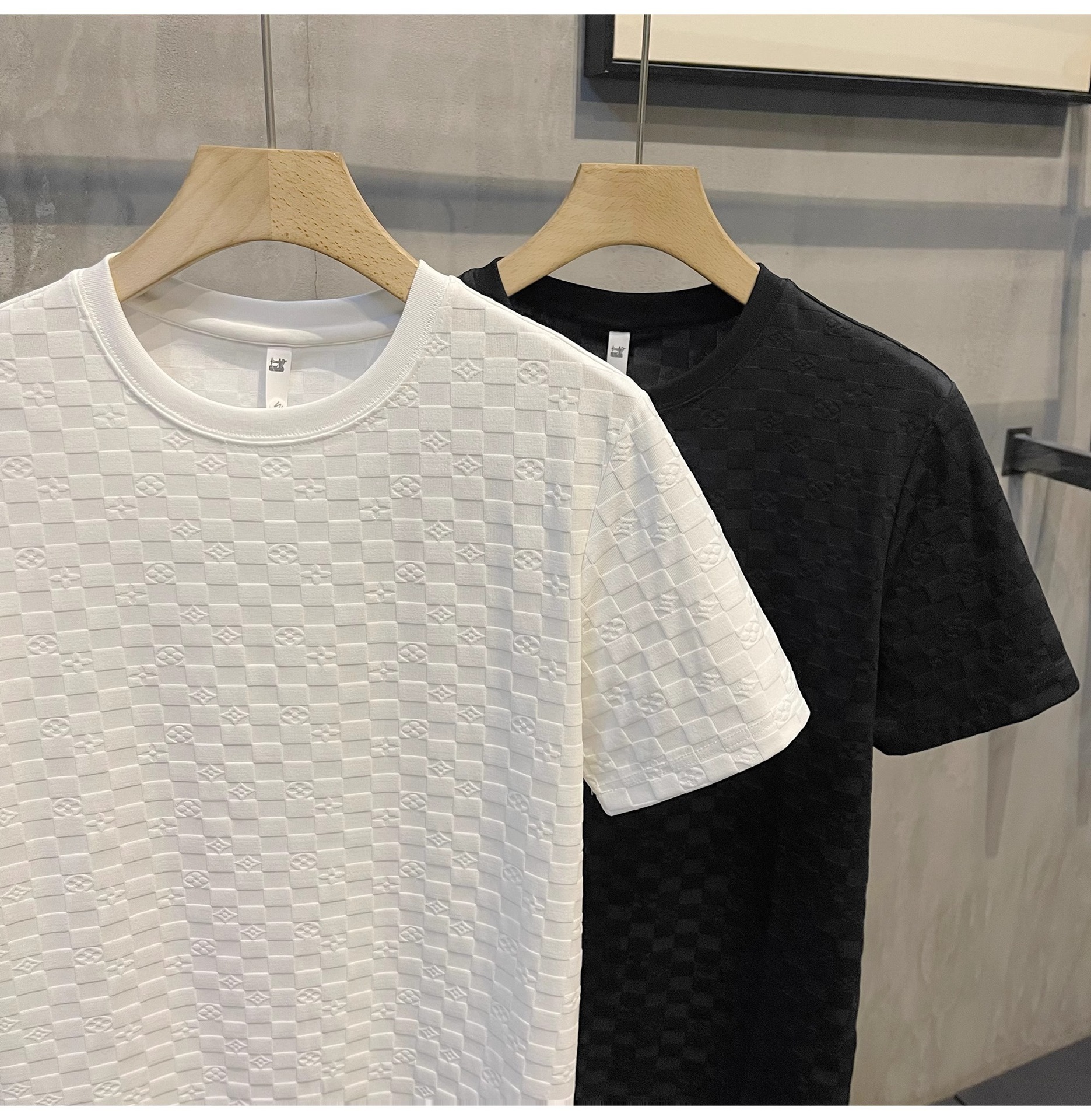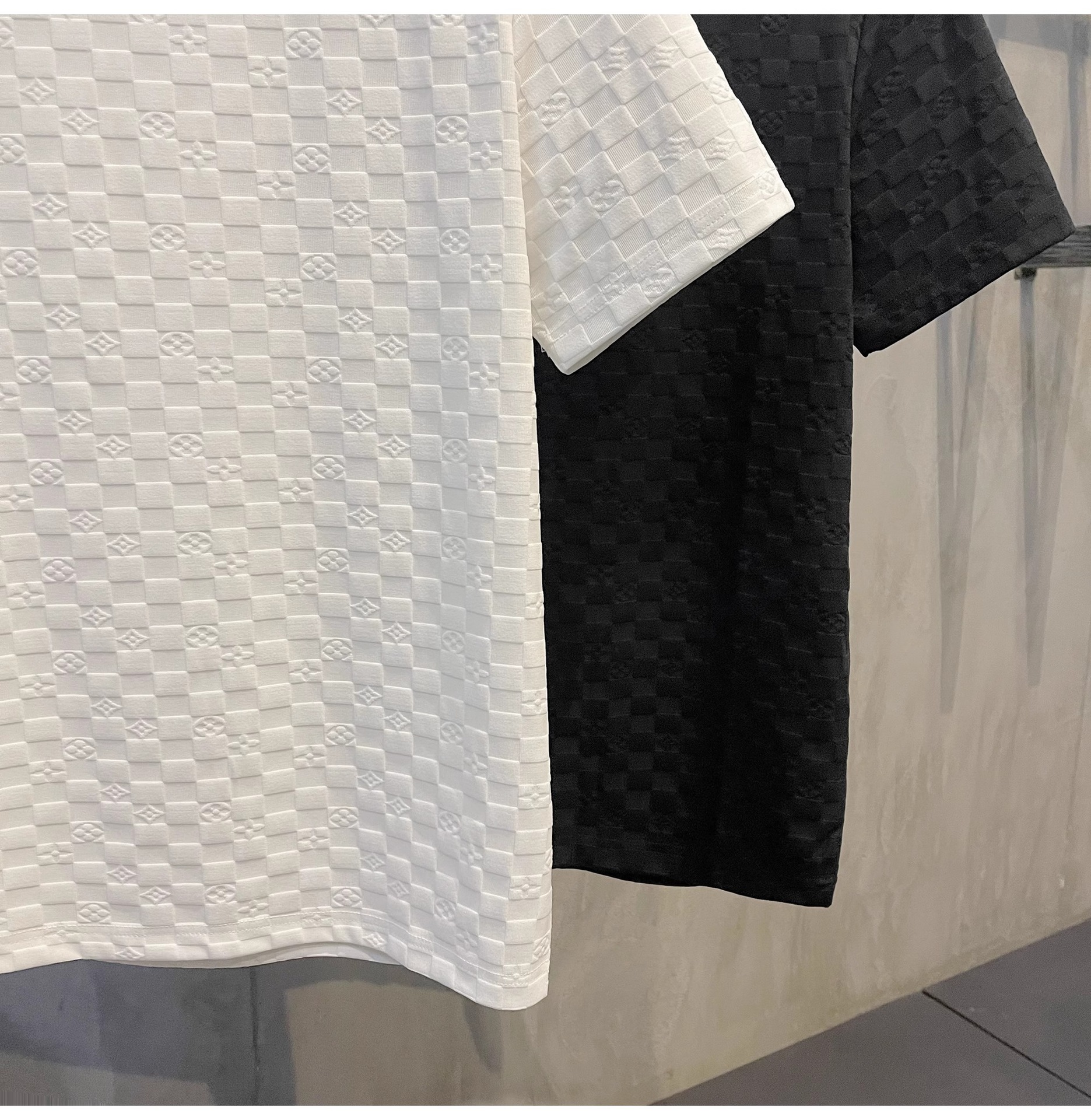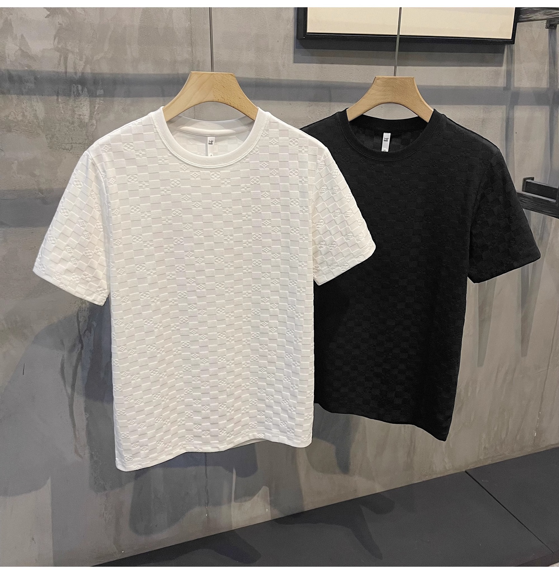 유럽 스타일 체크 무늬 반팔 셔츠 남자의 빛 럭셔리 우아한 단색 터틀넥 캐주얼 라운드 넥 티셔츠 탑스토어 가기