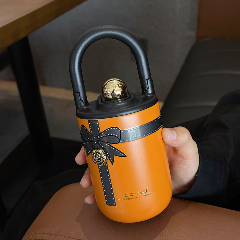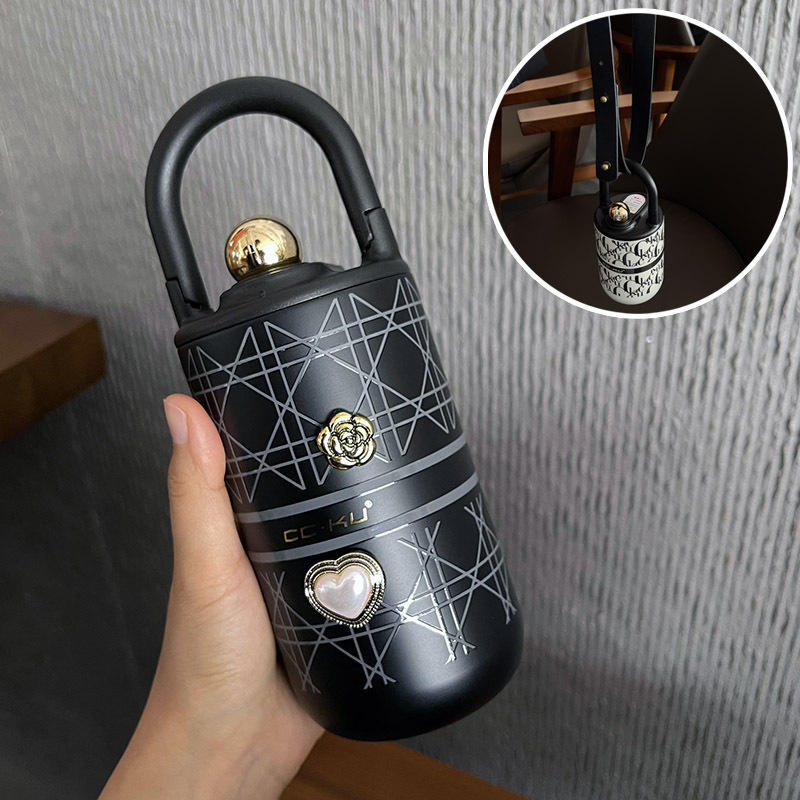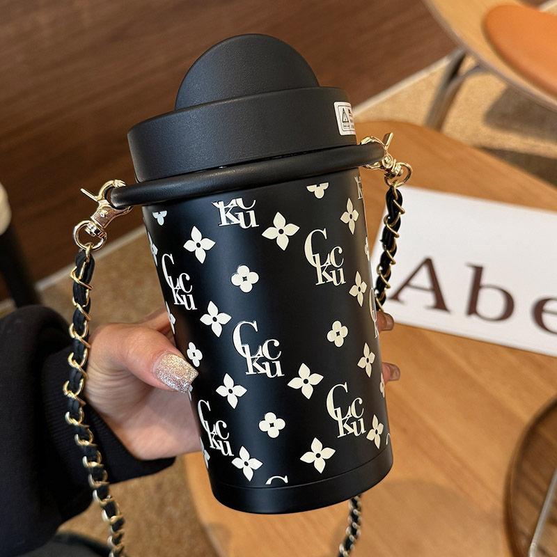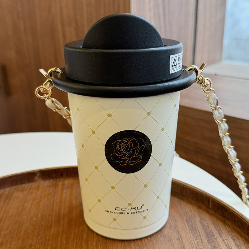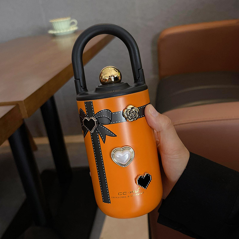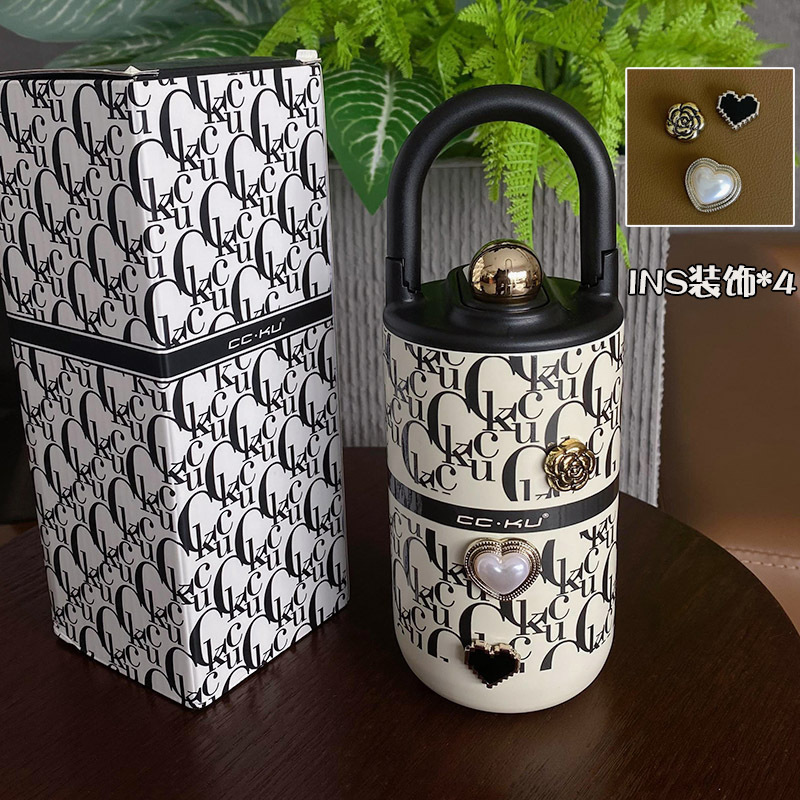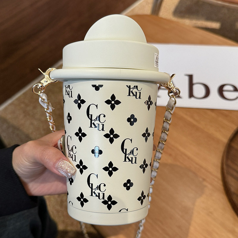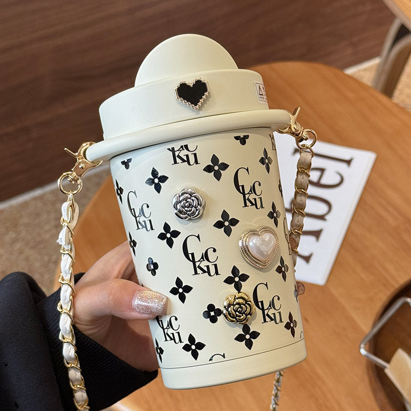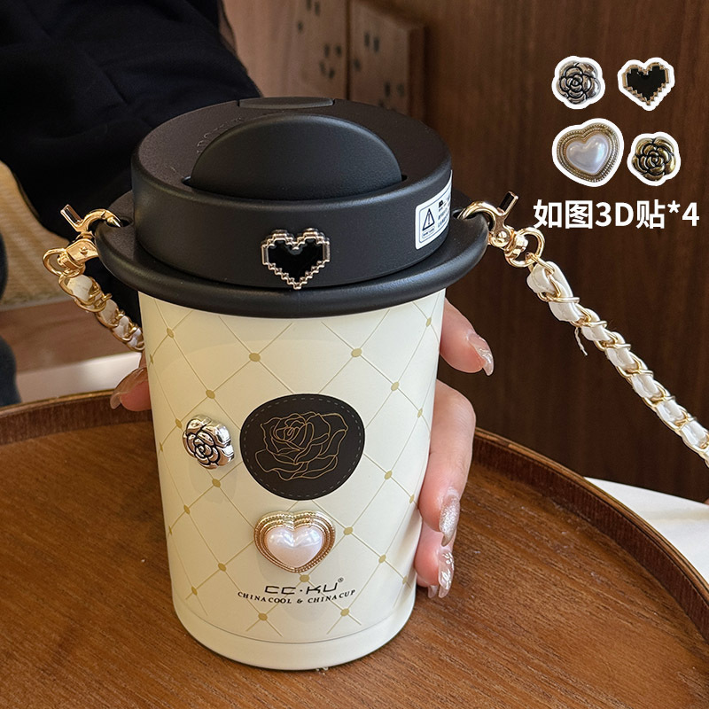 절묘한 외관과 높은 색상 가치 여성 보온병 컵 소형 휴대용 열 보존 밀봉 컵 학생 감각 밀짚 커피 컵