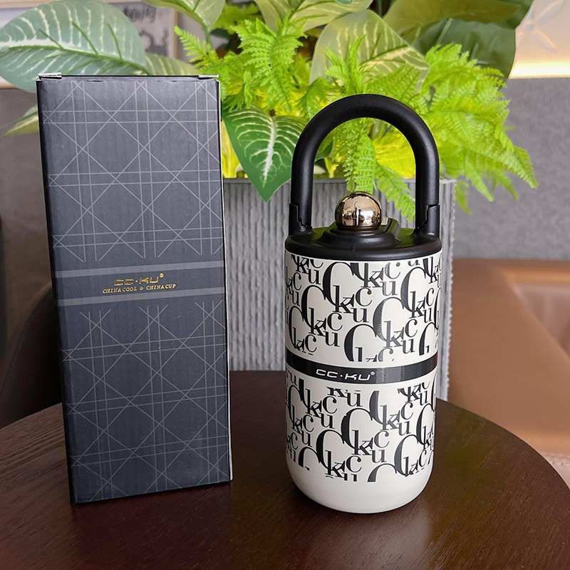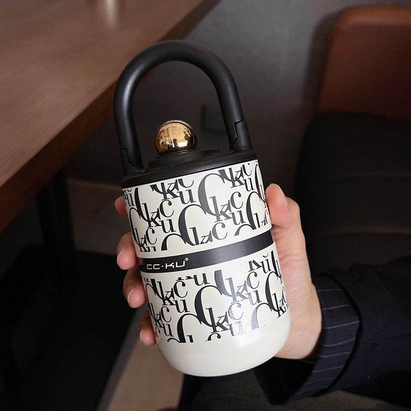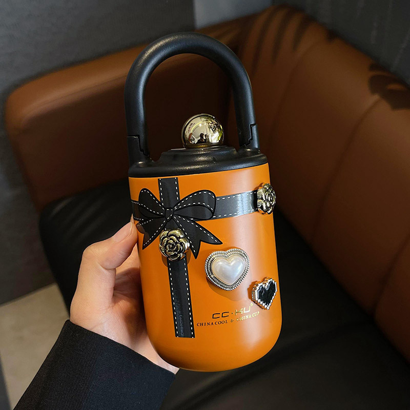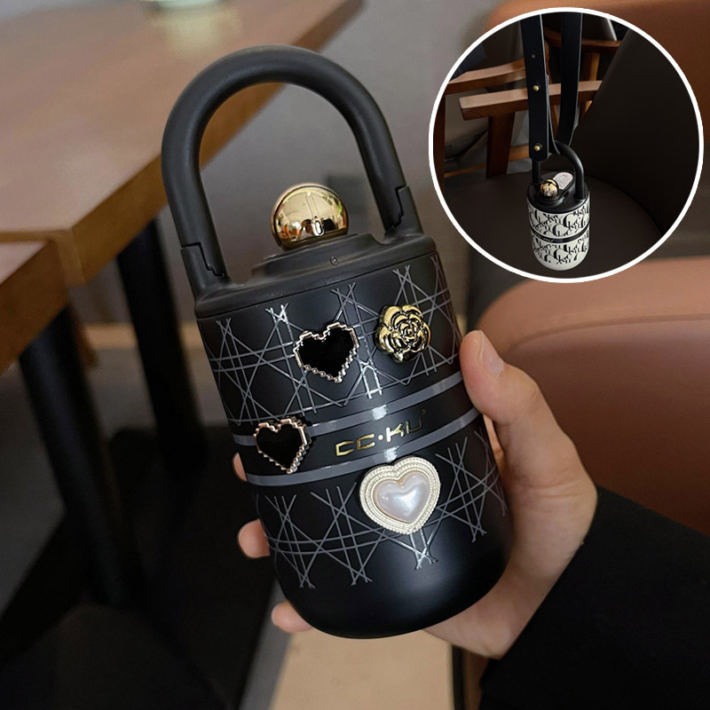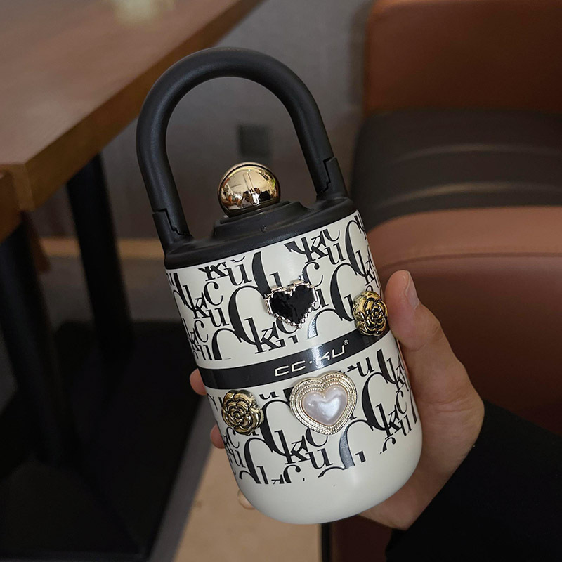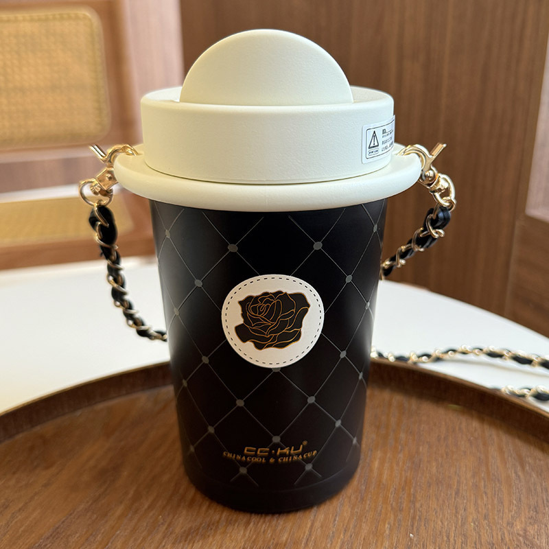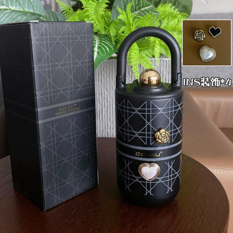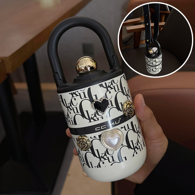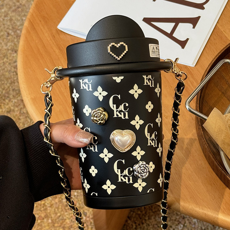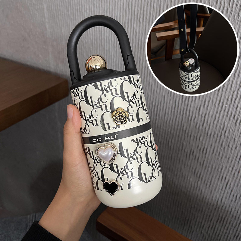 절묘한 외관과 높은 색상 가치 여성 보온병 컵 소형 휴대용 열 보존 밀봉 컵 학생 감각 밀짚 커피 컵
