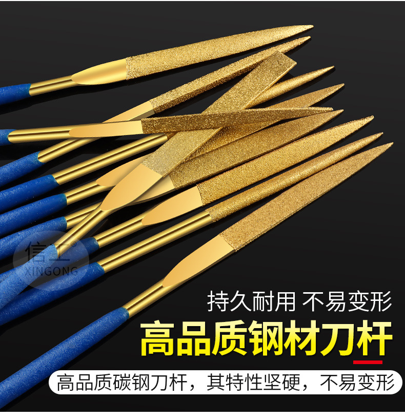 M & 다이아몬드 파일 티타늄 도금 타박상 칼 모듬 파일 합금 작은 녀석 문질러 금속 옥 연삭 공구 세트