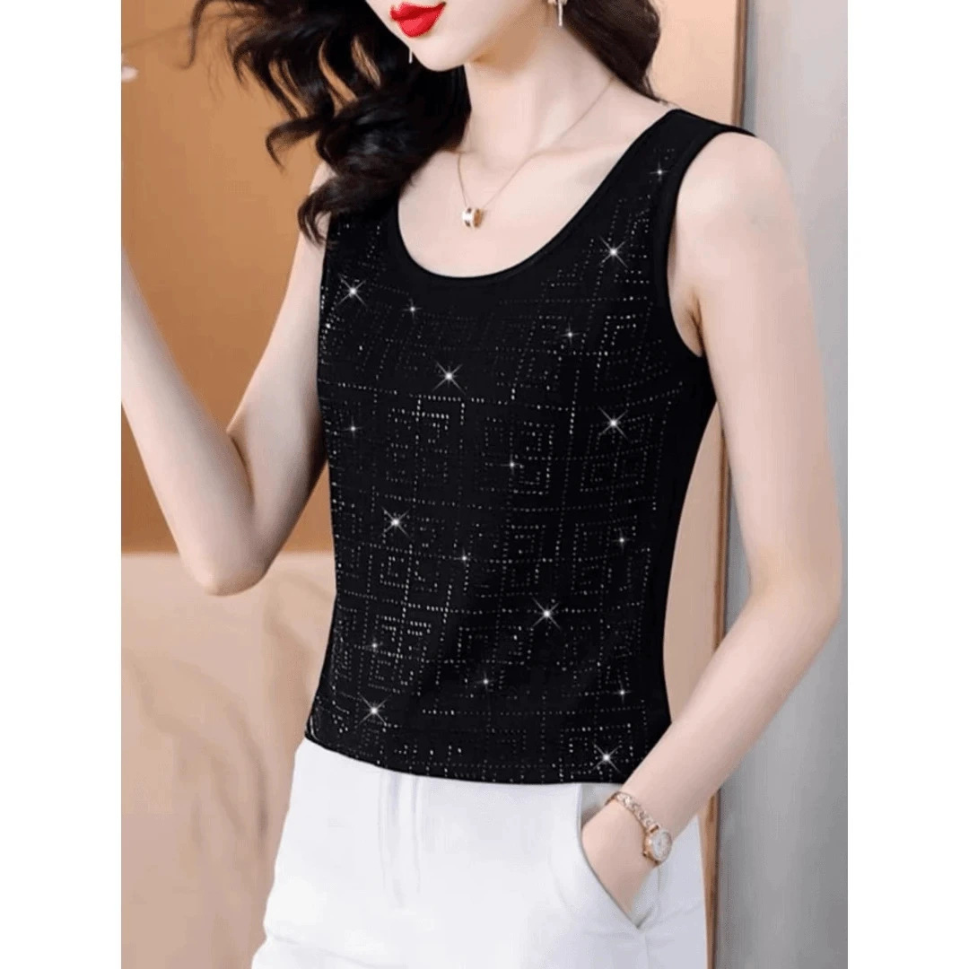 2025 년 여름 새로운 인터넷 연예인 우아한 핫 드릴링 높은 탄성 조끼 여성베이스 민소매 외부 착용 작은 조끼 톱 여성스토어 가기