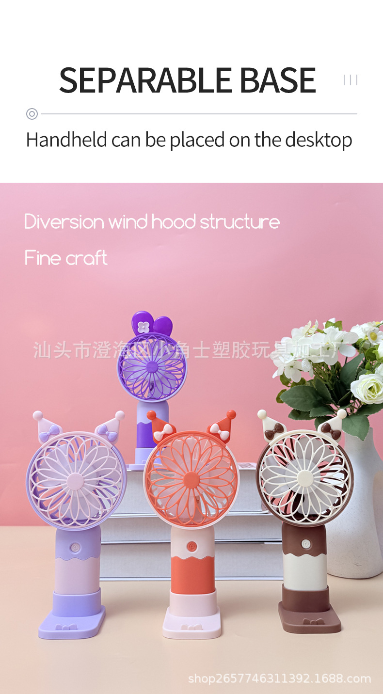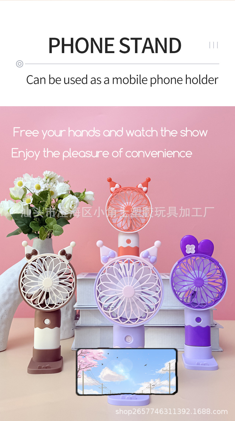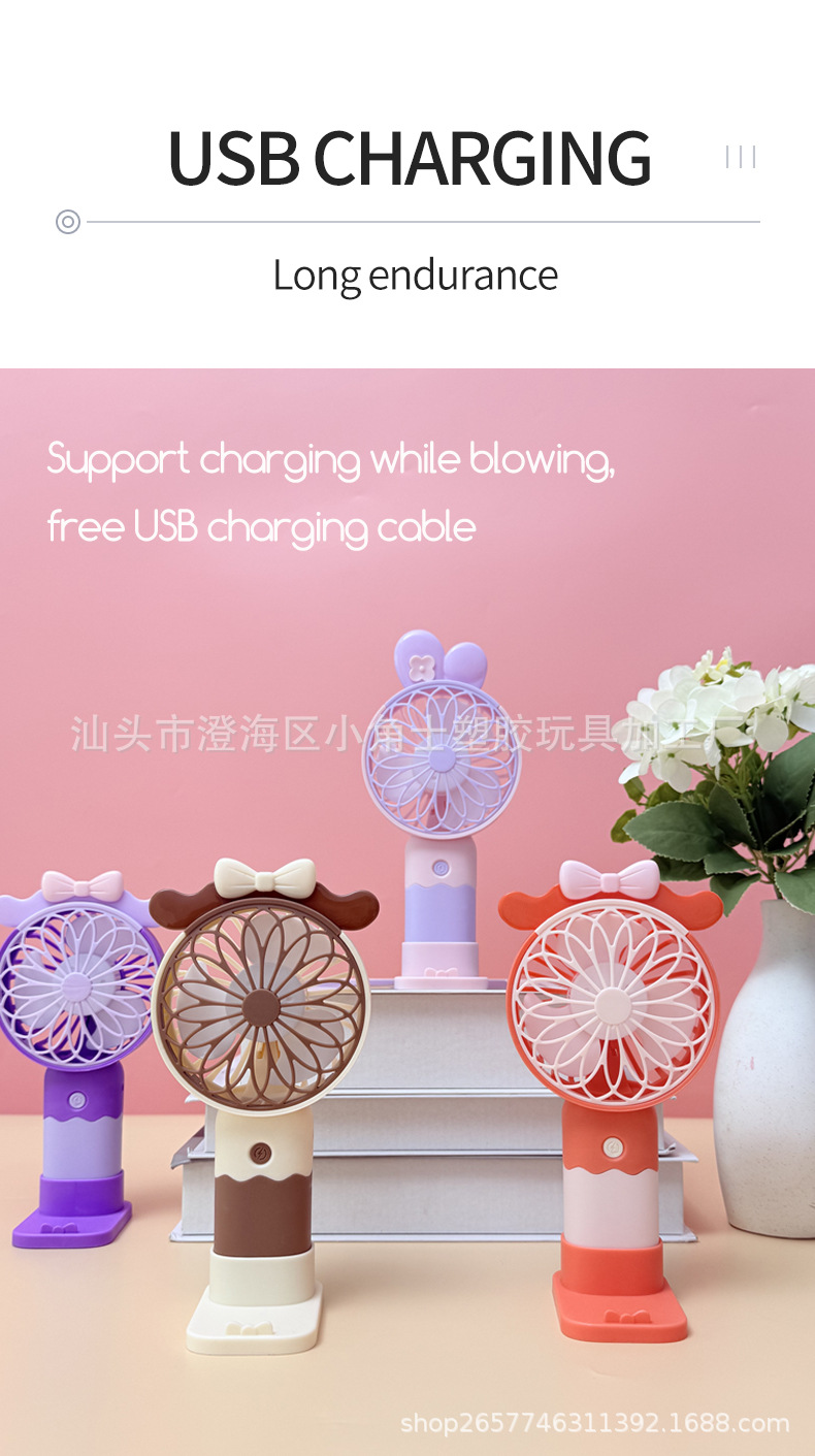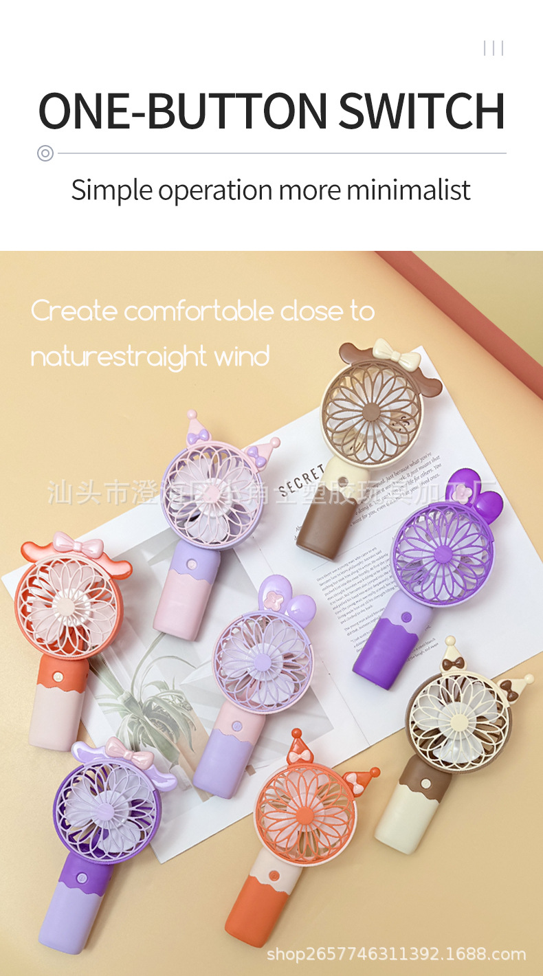 사탕 색 귀여운 만화 핸드 헬드 미니 충전식 USB 작은 팬 휴대 전화 스탠드 데스크탑 학생 선물 팬