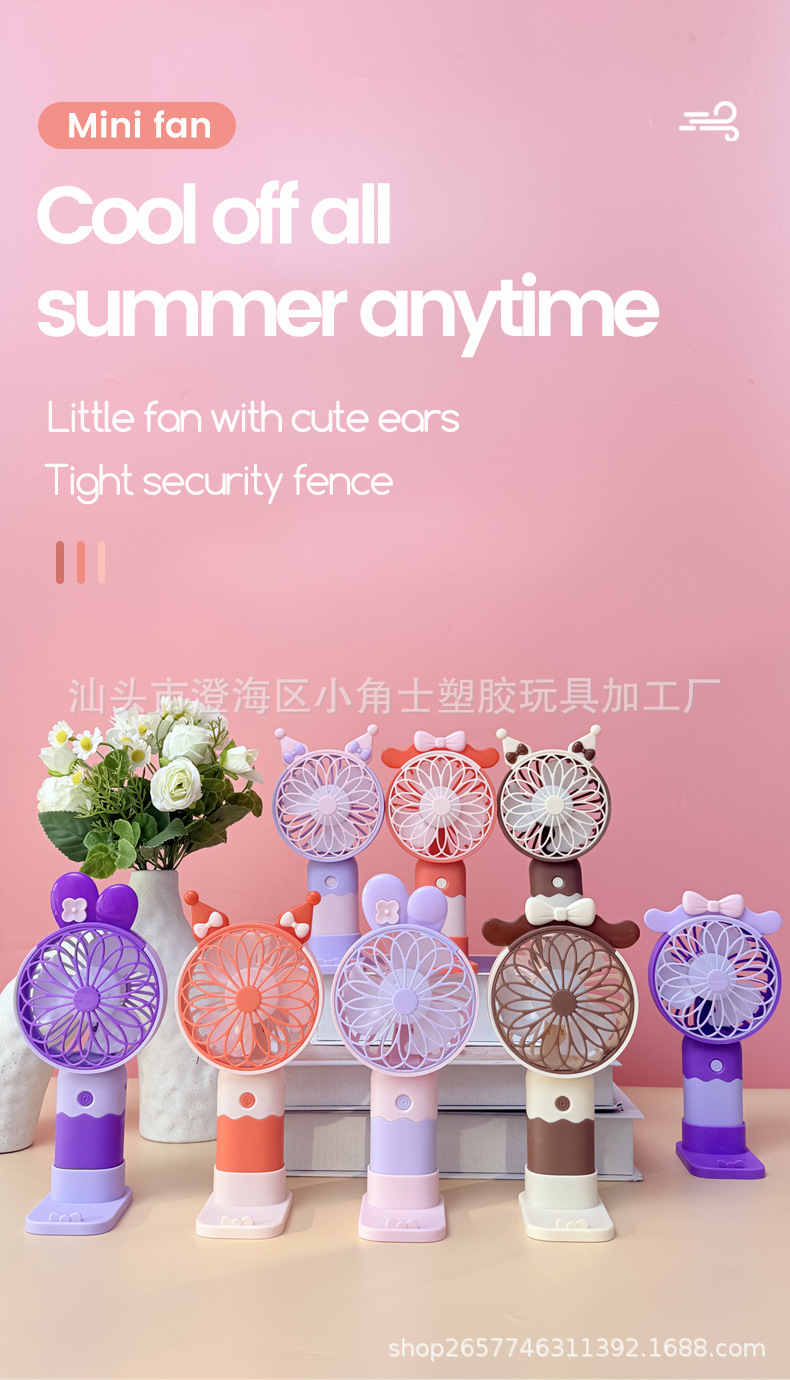 사탕 색 귀여운 만화 핸드 헬드 미니 충전식 USB 작은 팬 휴대 전화 스탠드 데스크탑 학생 선물 팬스토어 가기