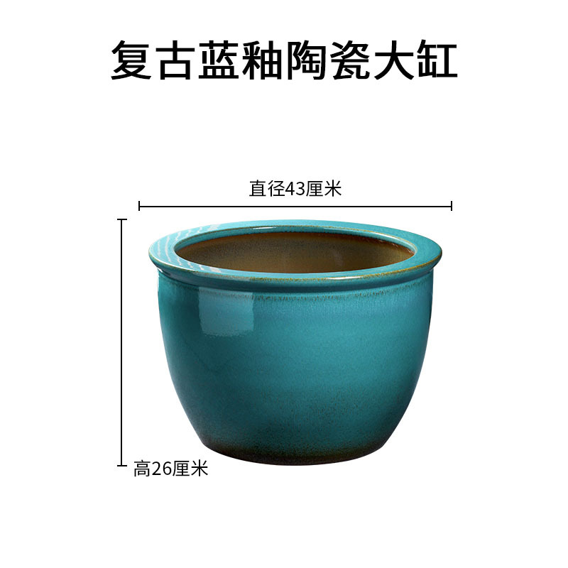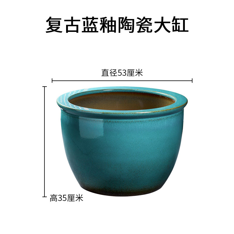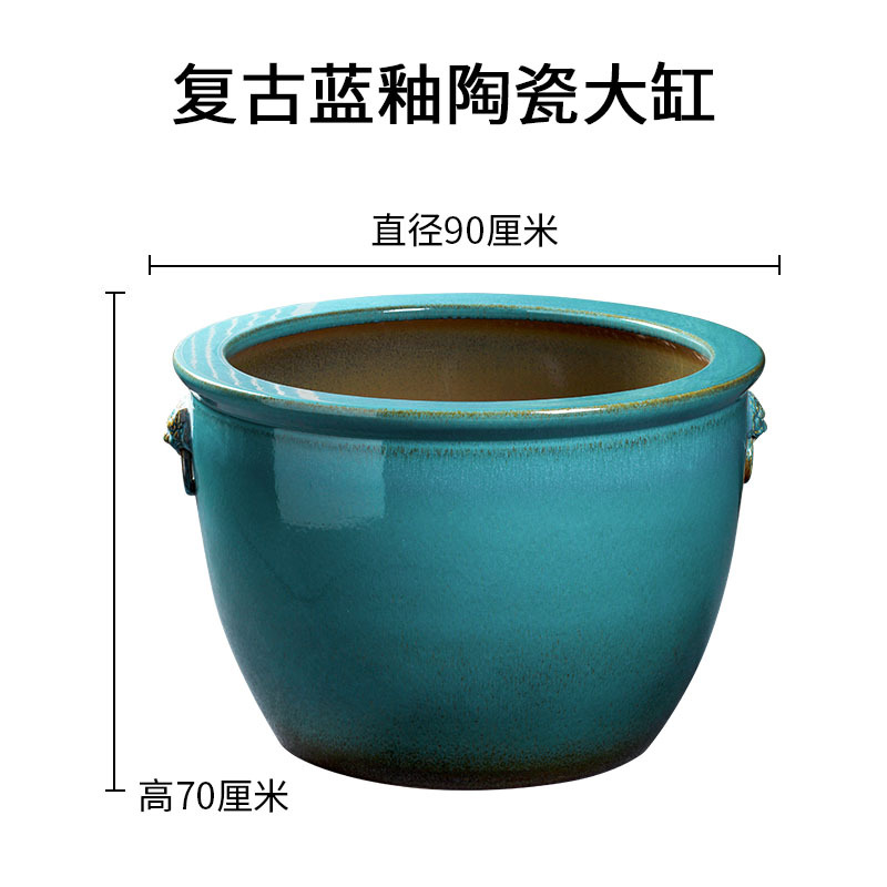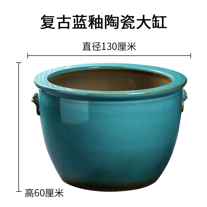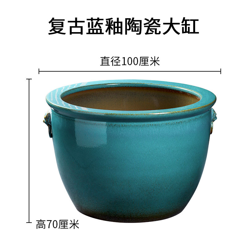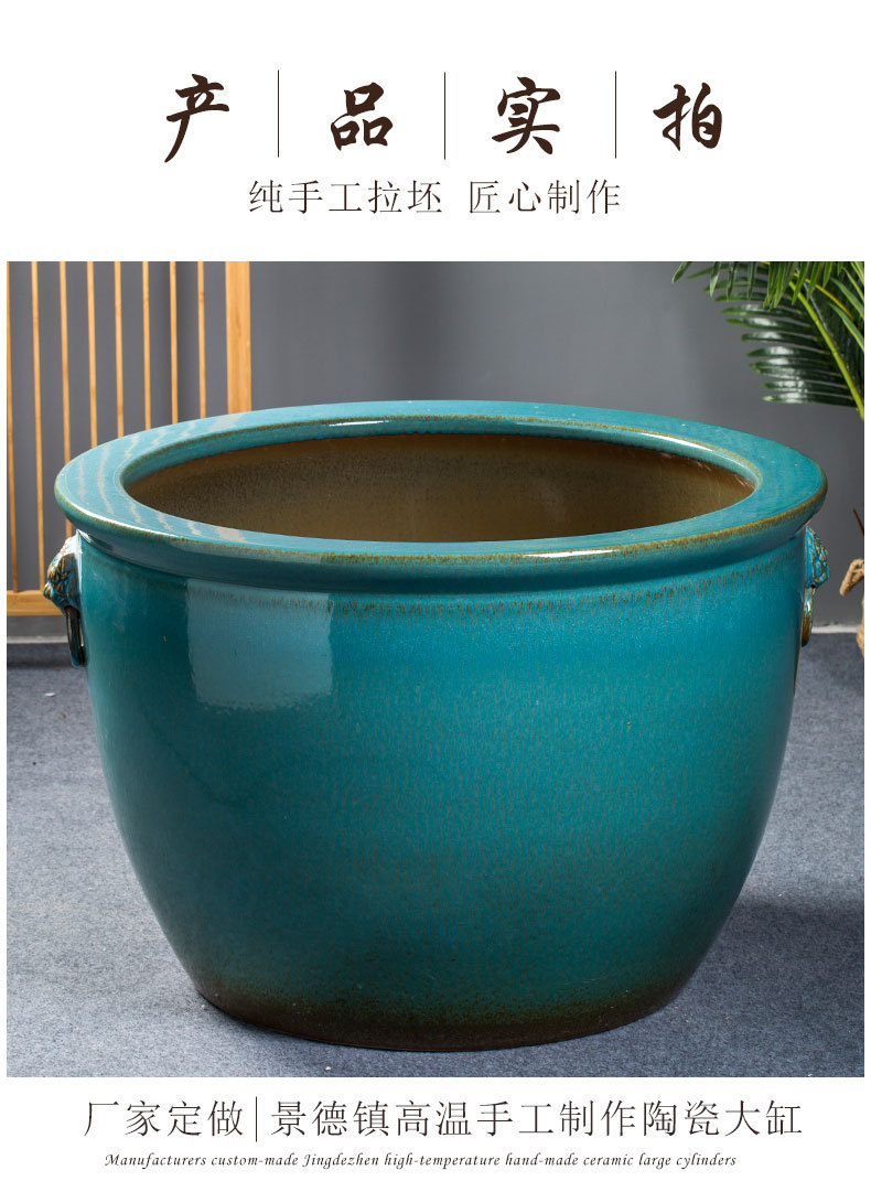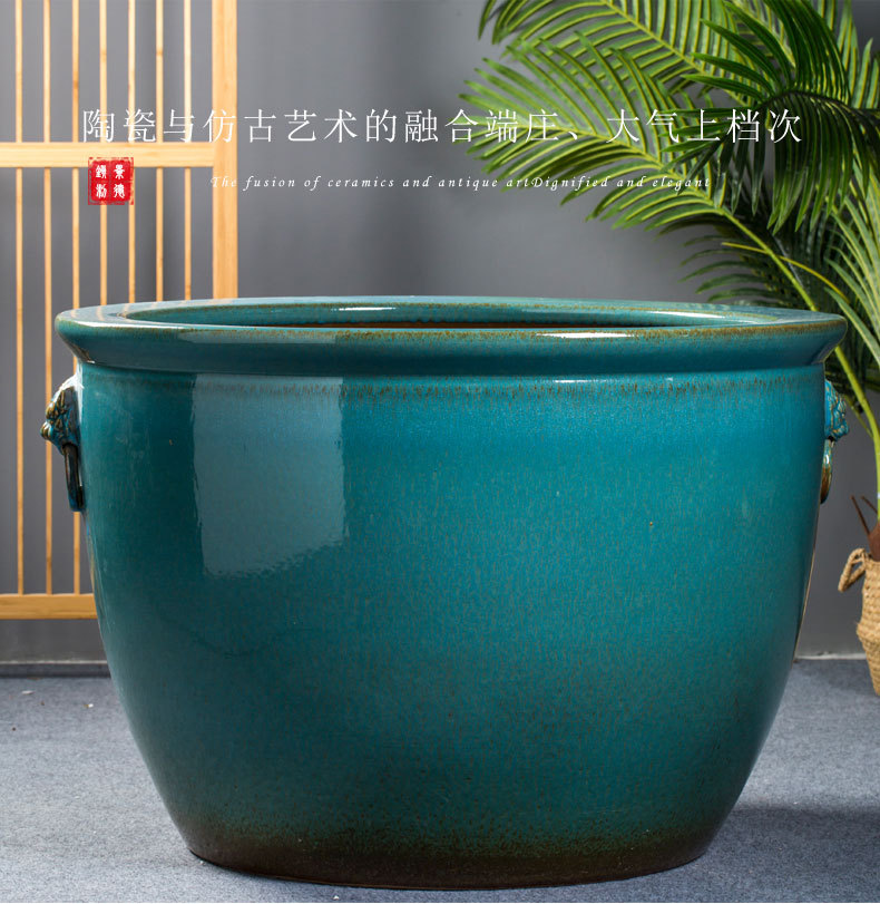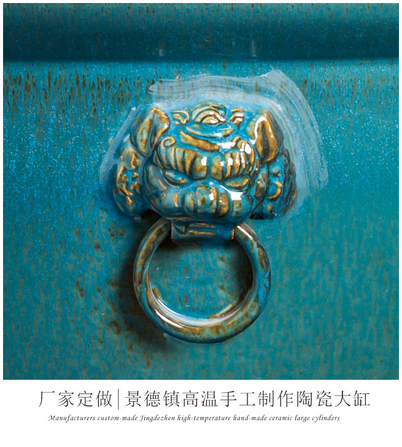 경덕진 도자기 대형 항아리 공장 블루 글레이즈 사자귀 항아리 전통 방식으로 물고기 키우는 수조 정원 연꽃 수련 화분 나무 심는 항아리
