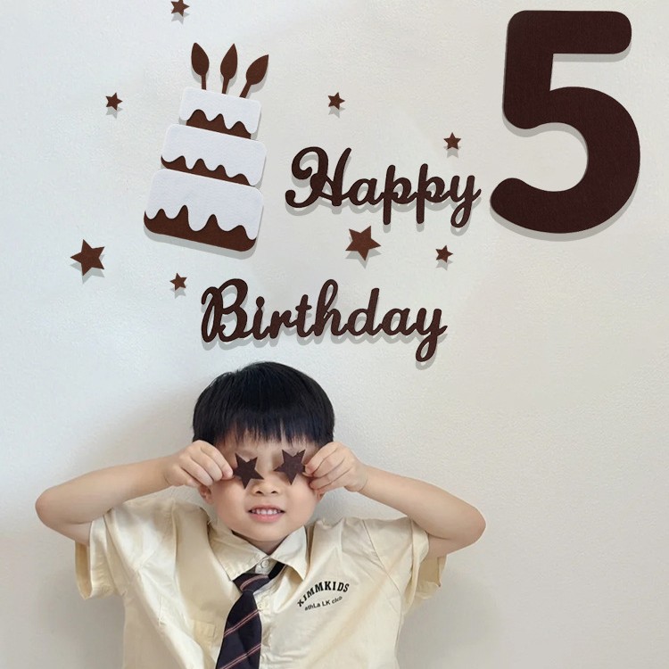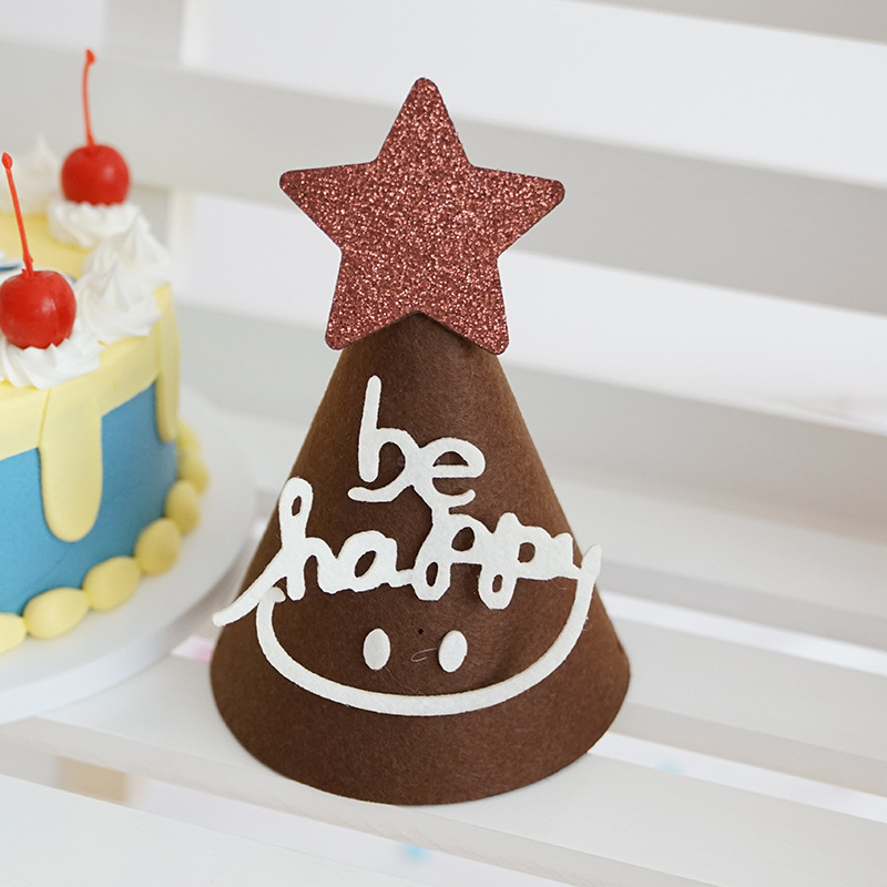 • 생일 모자 부직포 갈색 웃는 얼굴