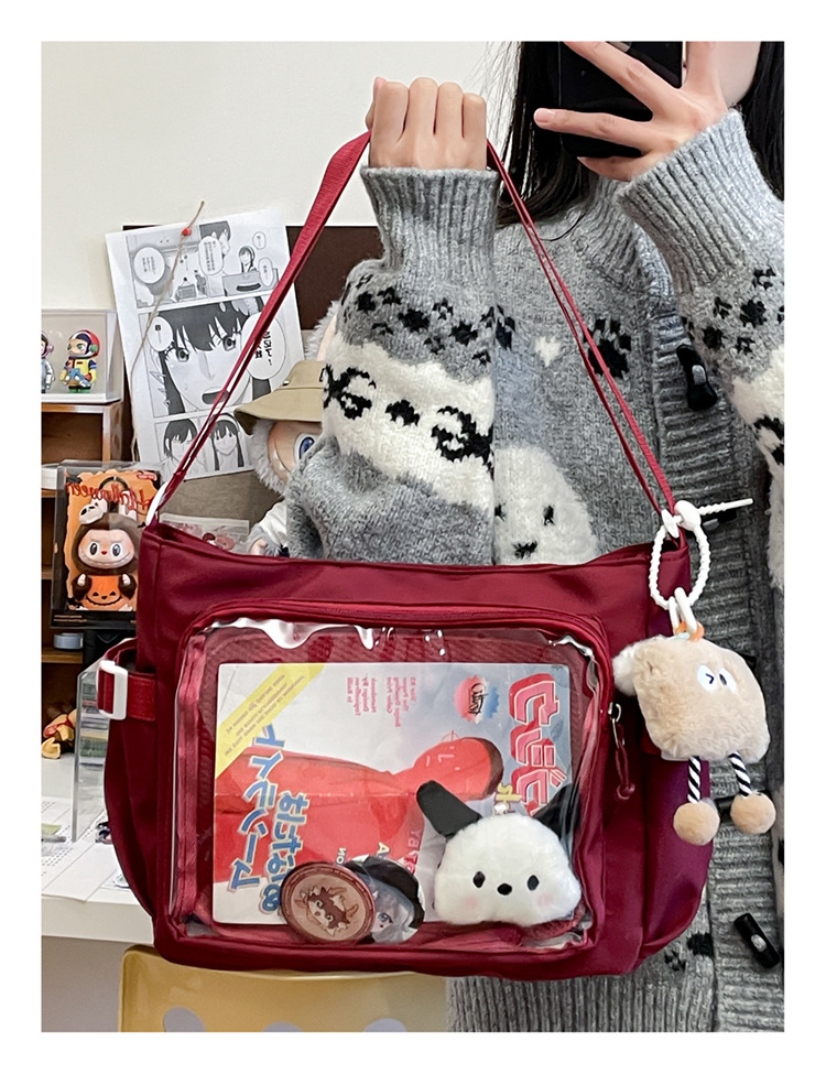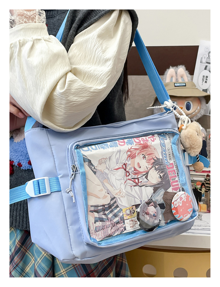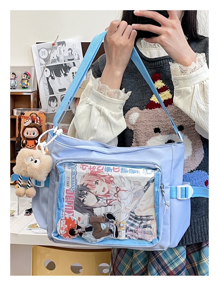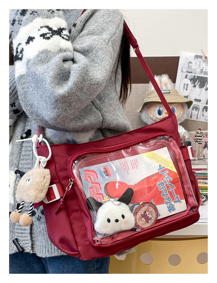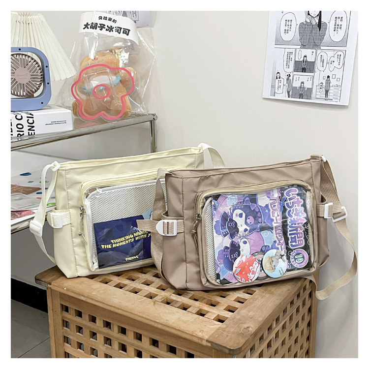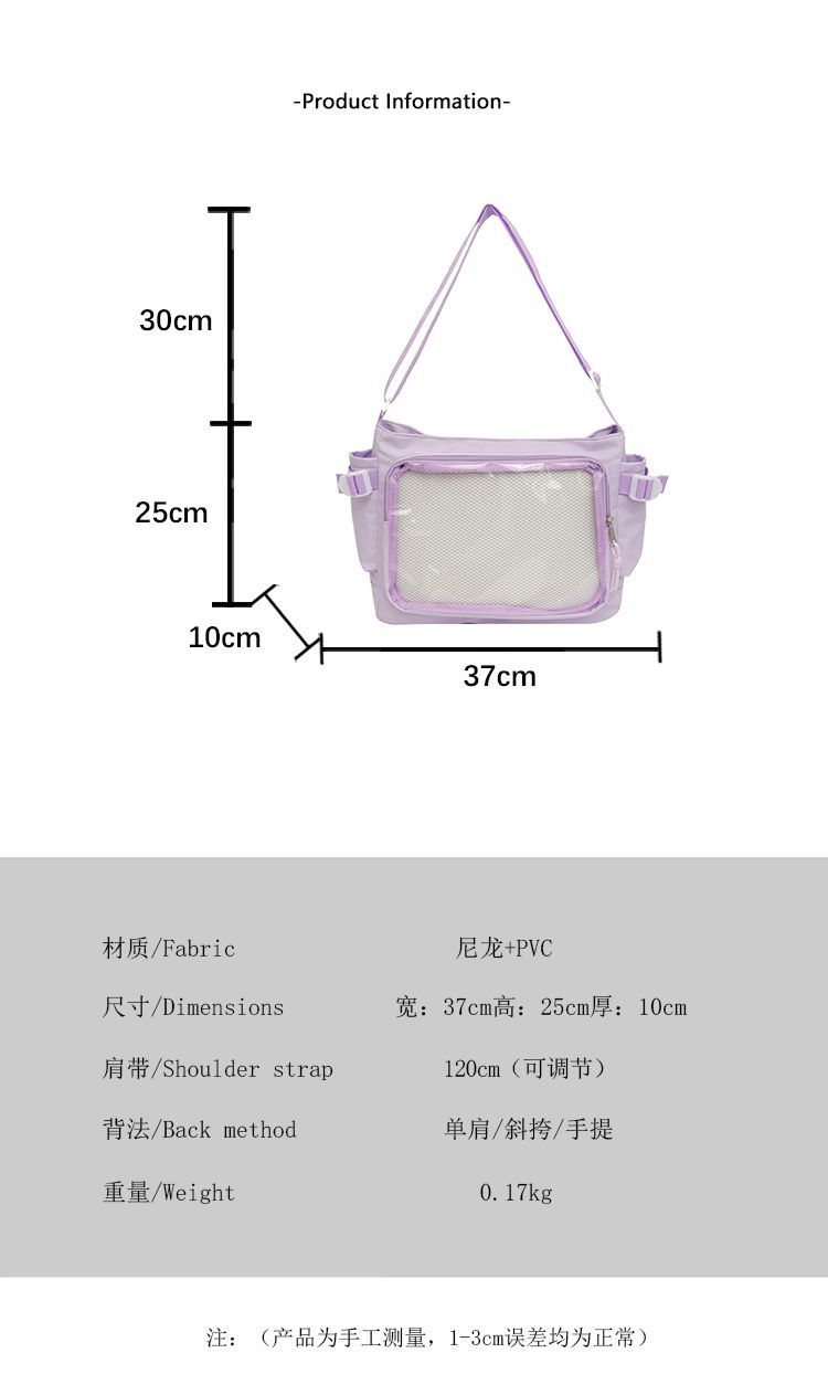 대학 스타일 올 매치 간단한 대용량 클래스 도서 메신저 가방 여성의 투명 어깨 크로스 바디 백 통증 가방